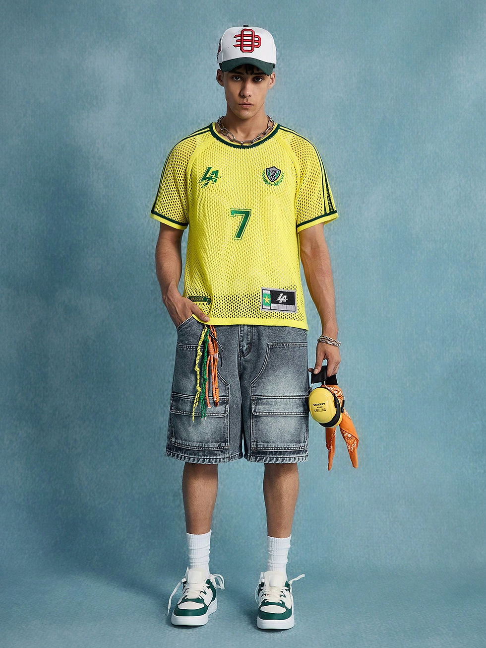 ROMWE MEN Prep Top Polo de Malha com Listras Contrastantes e Bordado Numérico p