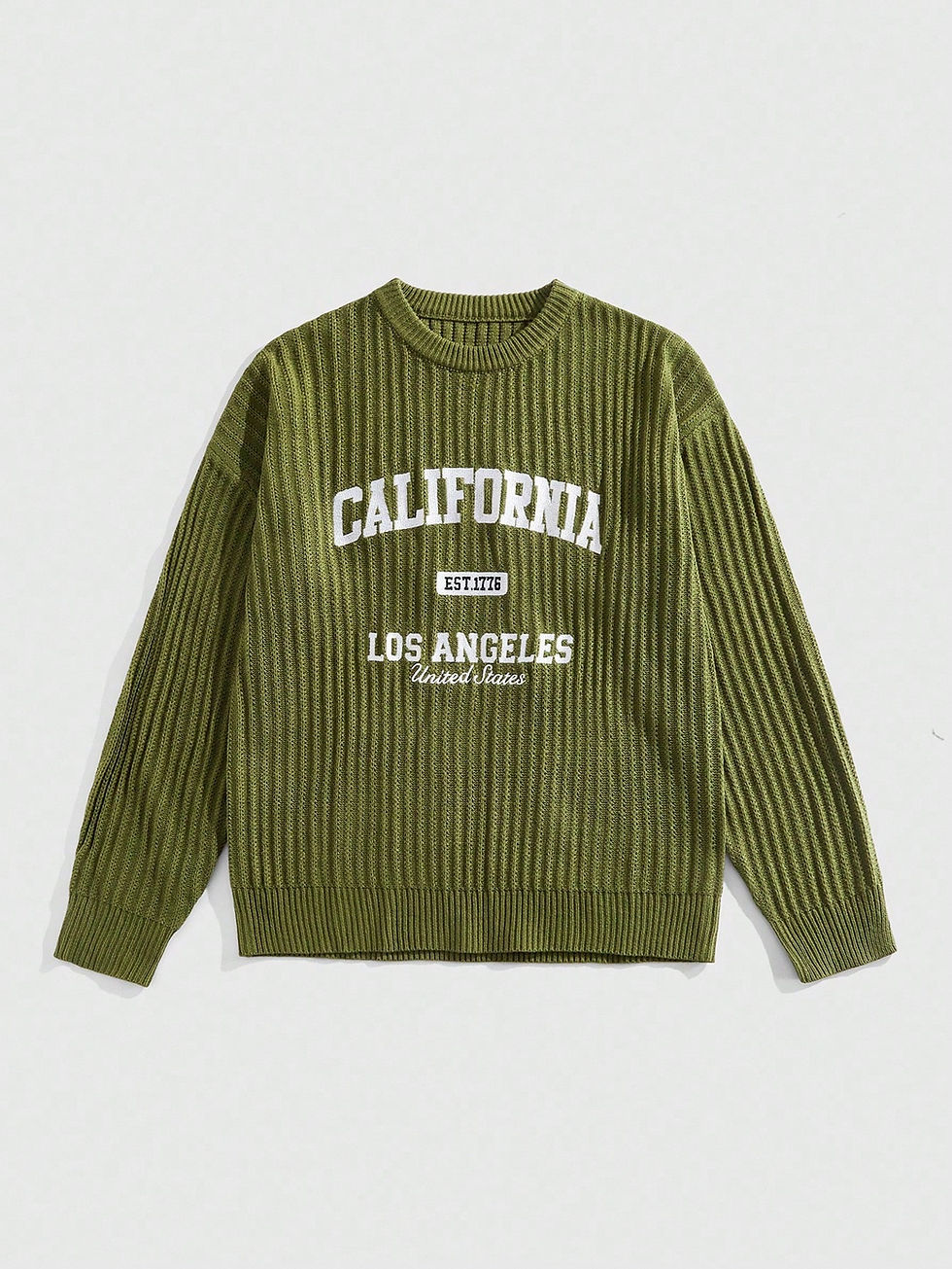 ROMWE MEN Street Life Suéter de Malha Bordado com Letra Casual Masculino