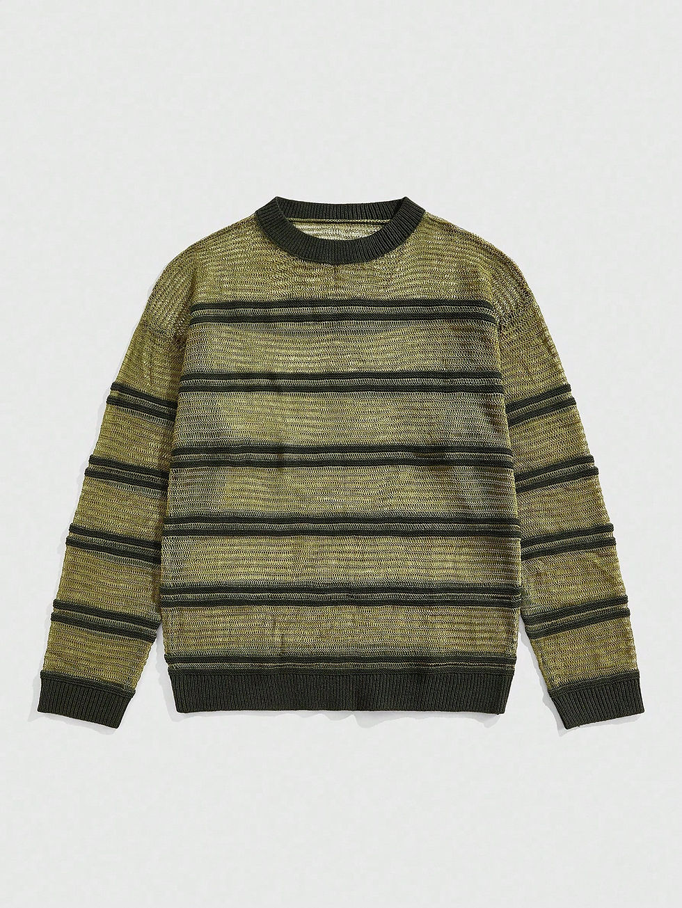 ROMWE MEN Street Life Suéter Casual de Tricô com Ombros Caídos, Gola Redonda e