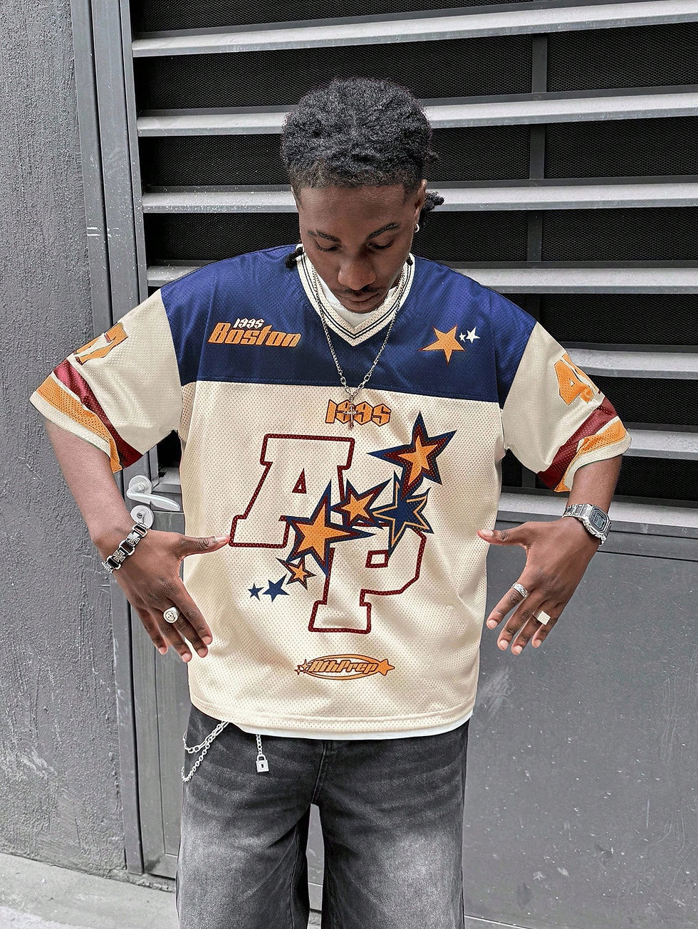ROMWE MEN Prep Camiseta de Manga Curta com Estampa Gráfica Esportiva Americana