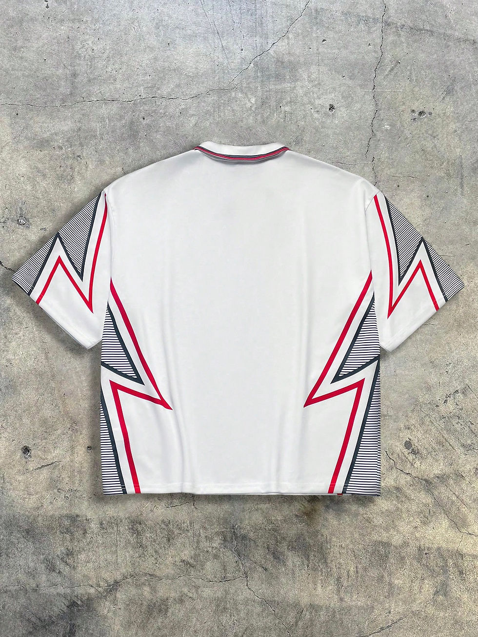ROMWE MEN Prep Camiseta Casual Masculina com Gola Virada e Manga Curta Estampad