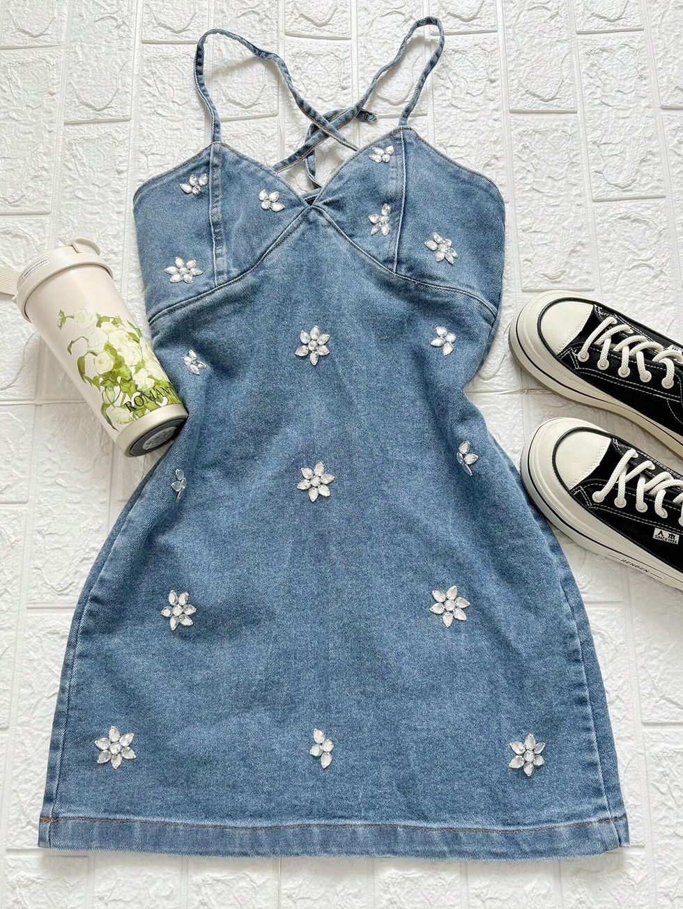 Vestido curto jeans com brilho Famininas