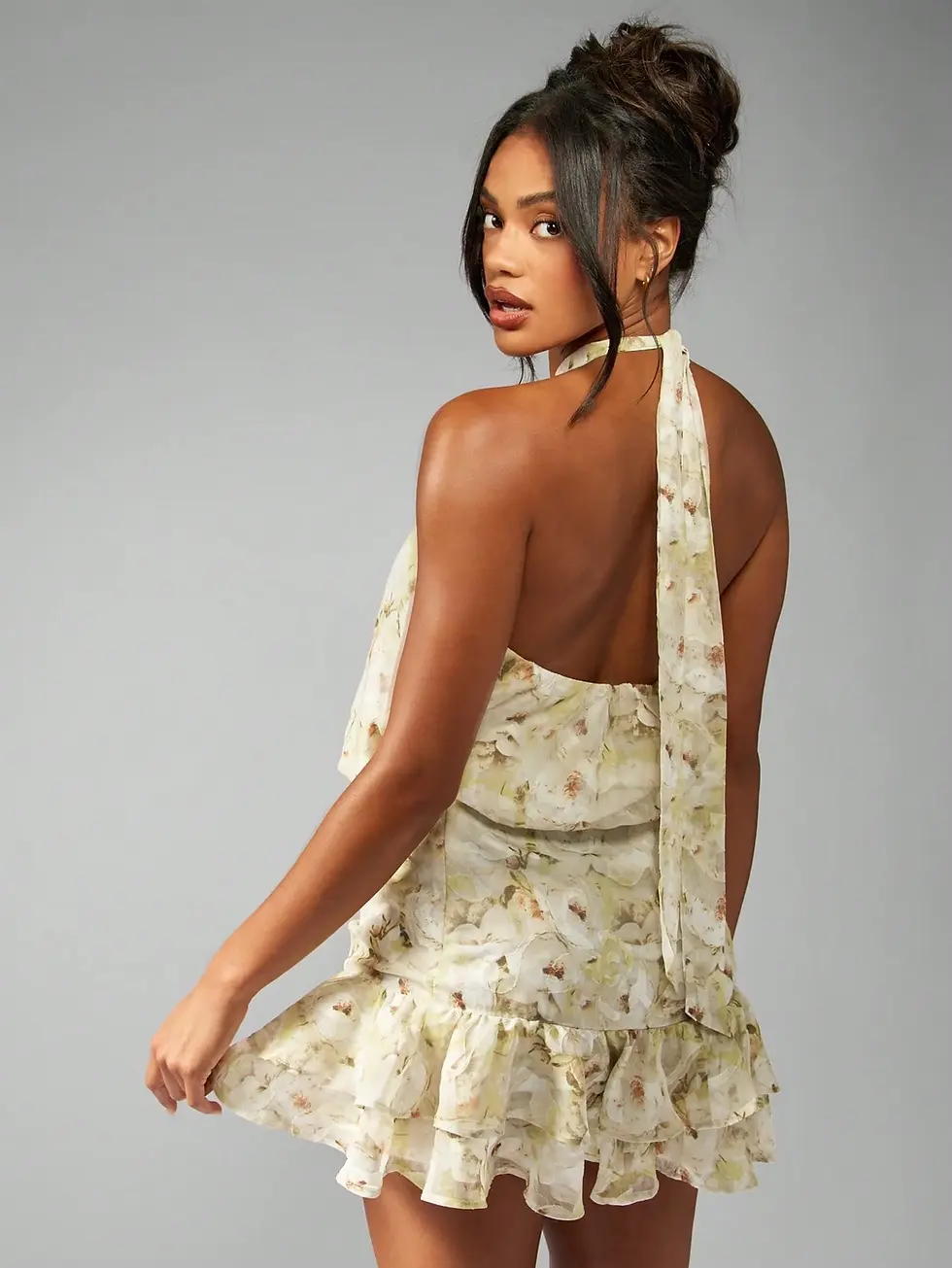 MISSGUIDED Vestido Curto de Gola Halter em Chiffon Floral de Verão, Bainha Plis