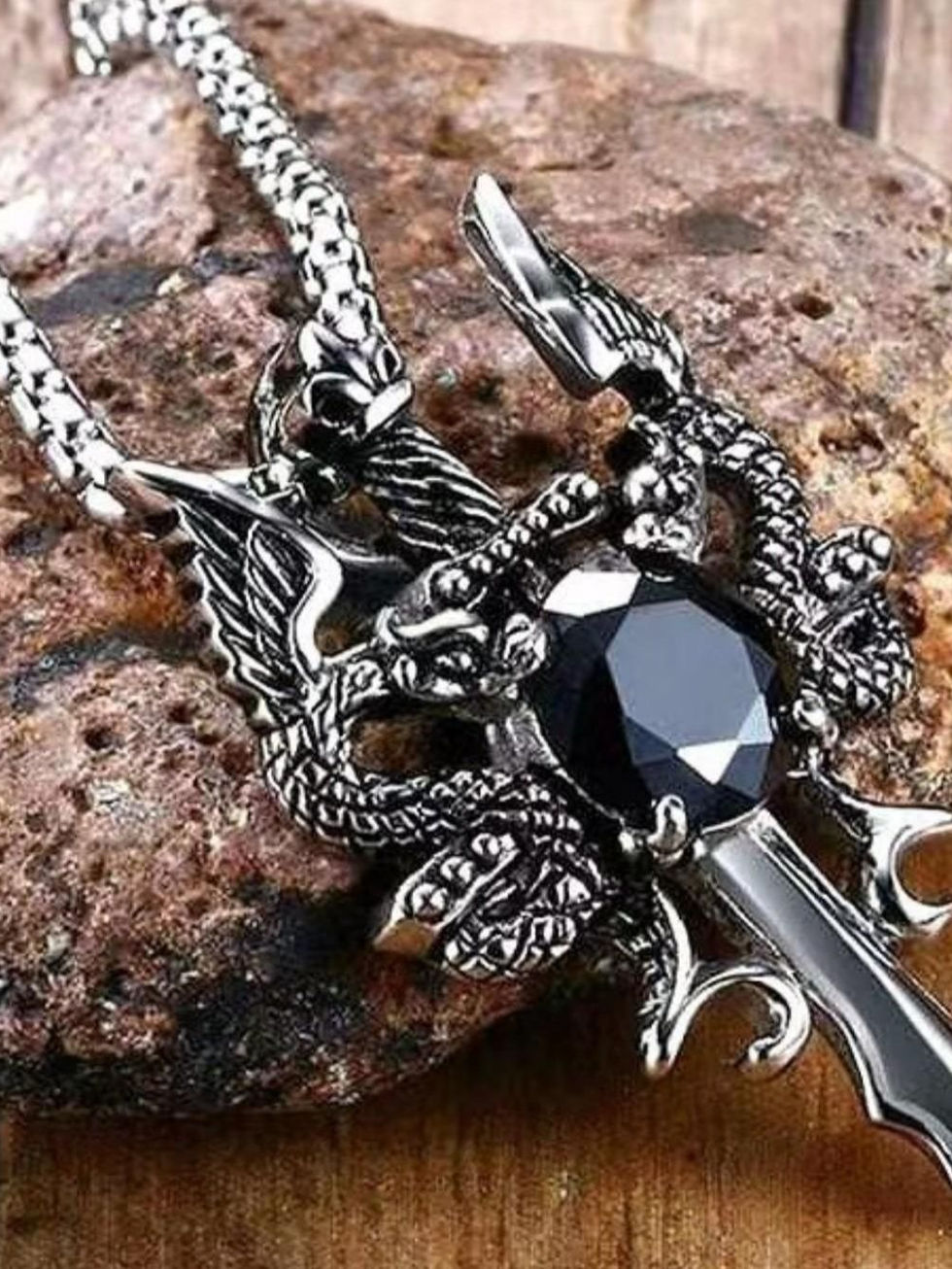 1 estilo gótico feminino antigo prata-cor dragão mal gem pingente colar persona