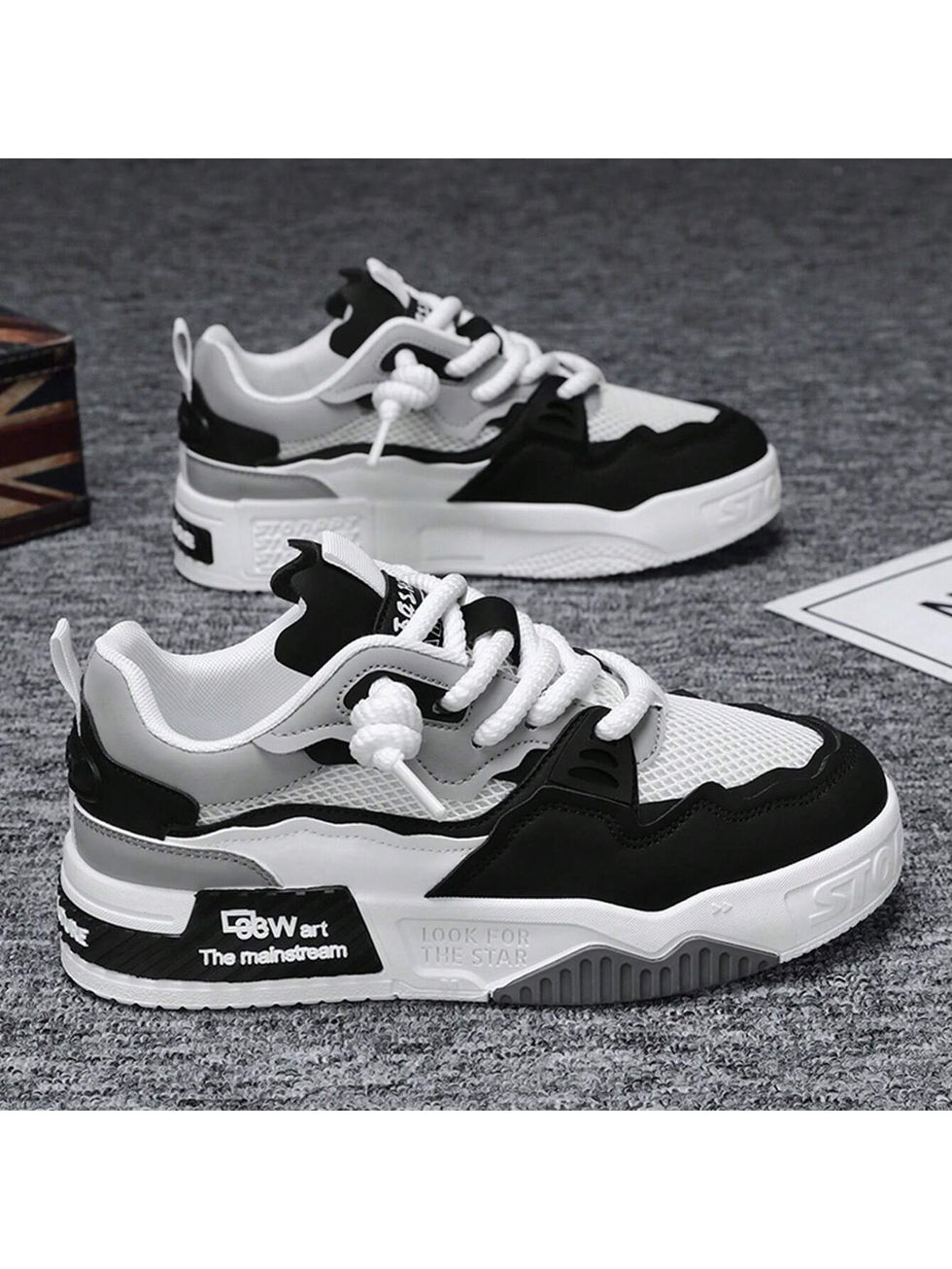 1 Par Tênis Masculino Casual Estampado com Cadarço em PU, Tênis Esportivos para