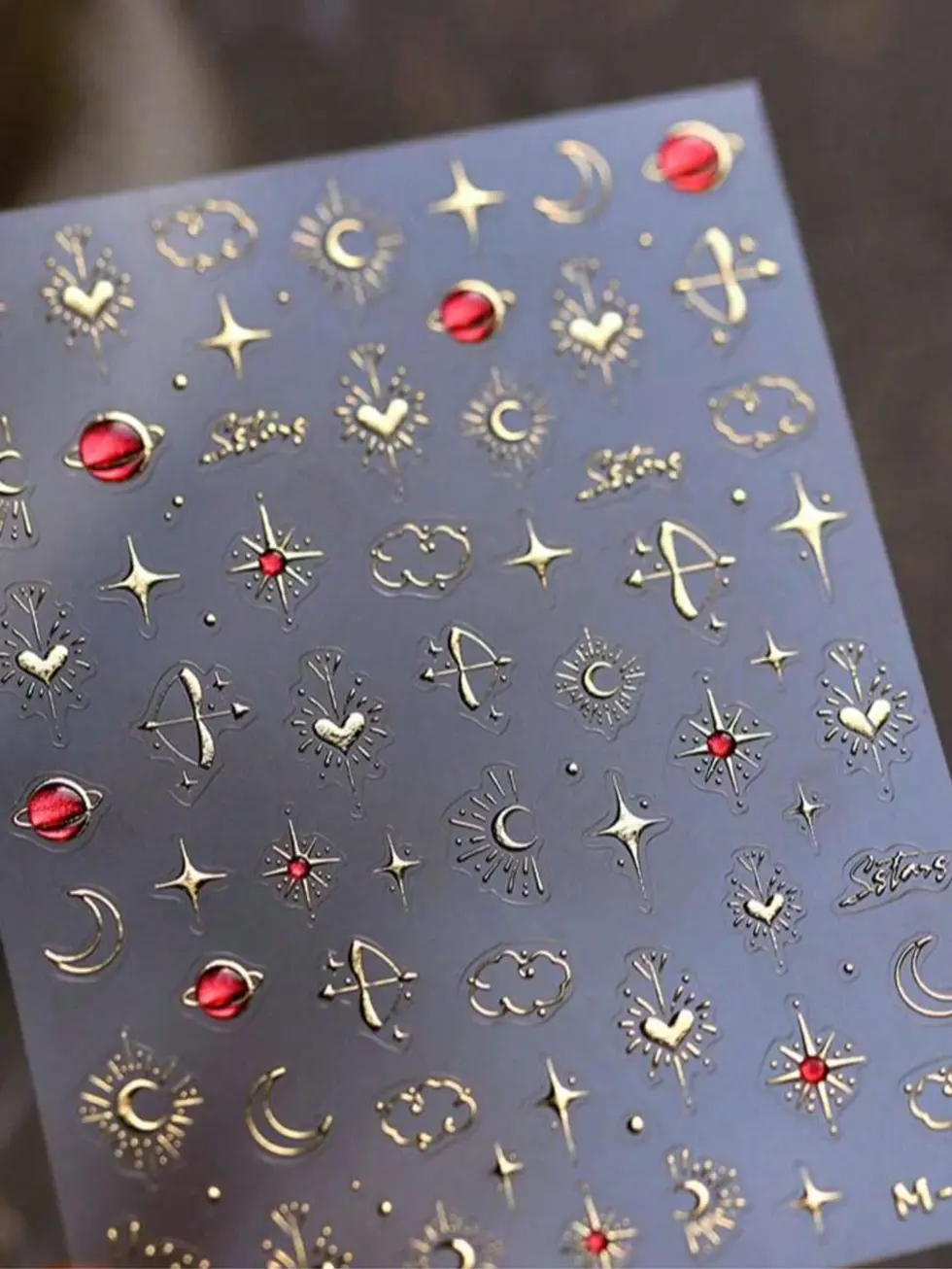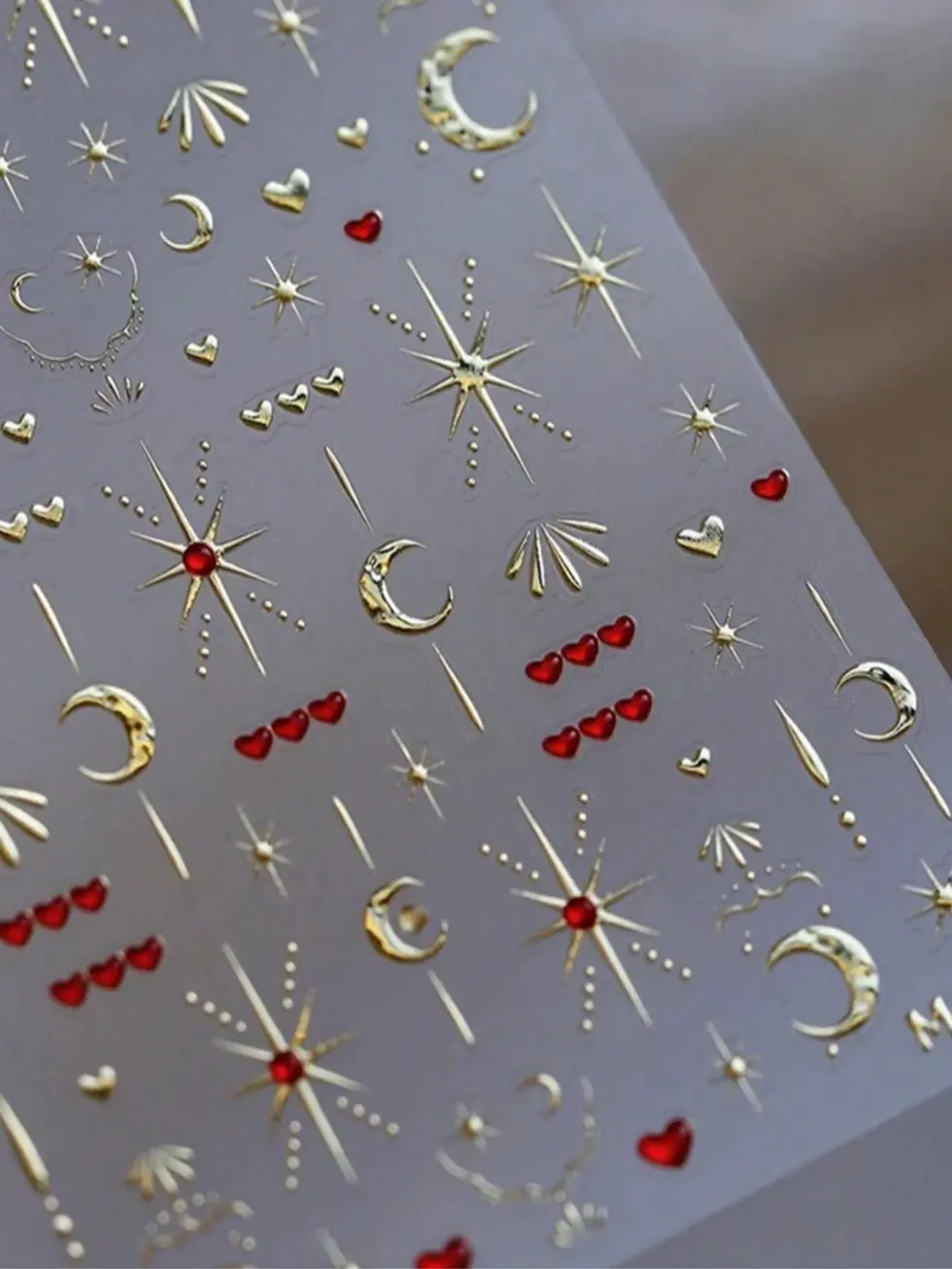 1 Peça Adesivo de Unhas de Arte 3D Metálico, Com Padrões de Coração, Estrela e