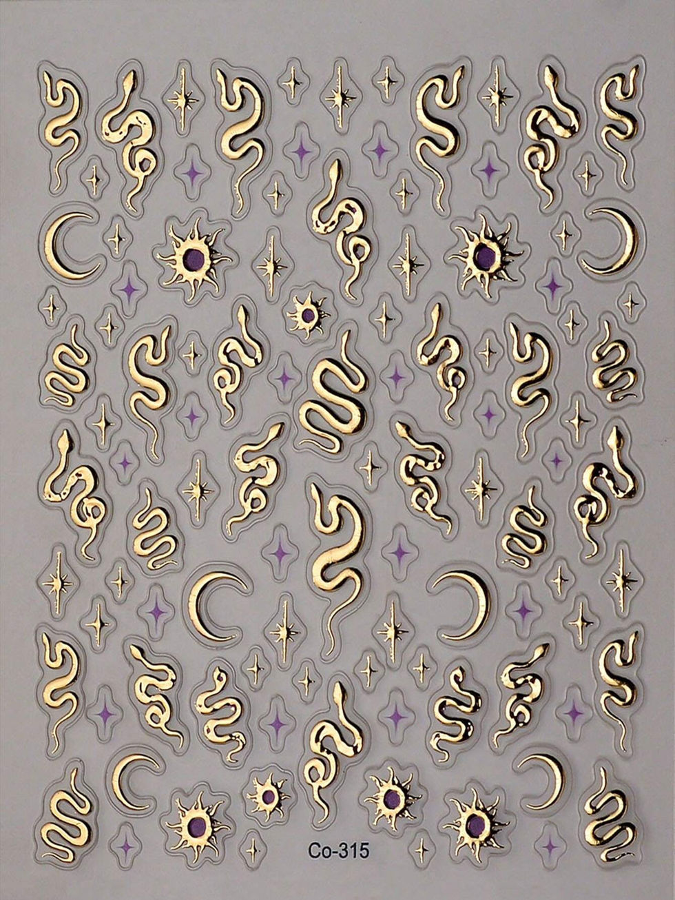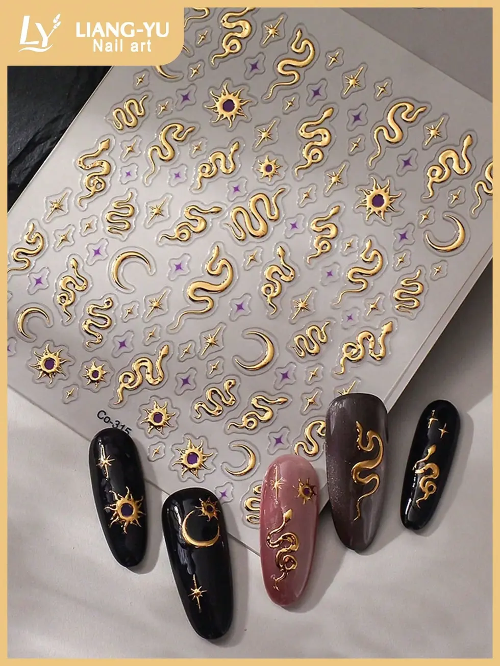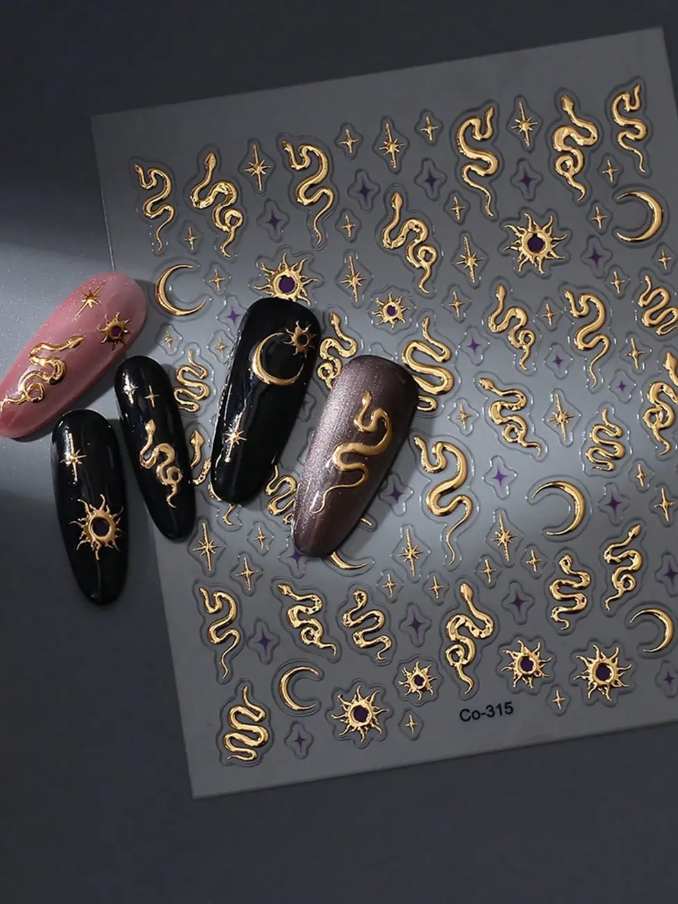 1 Peça Acessórios Decorativos de Unhas 5D Retrô com Estampa de Serpente, Sol, L