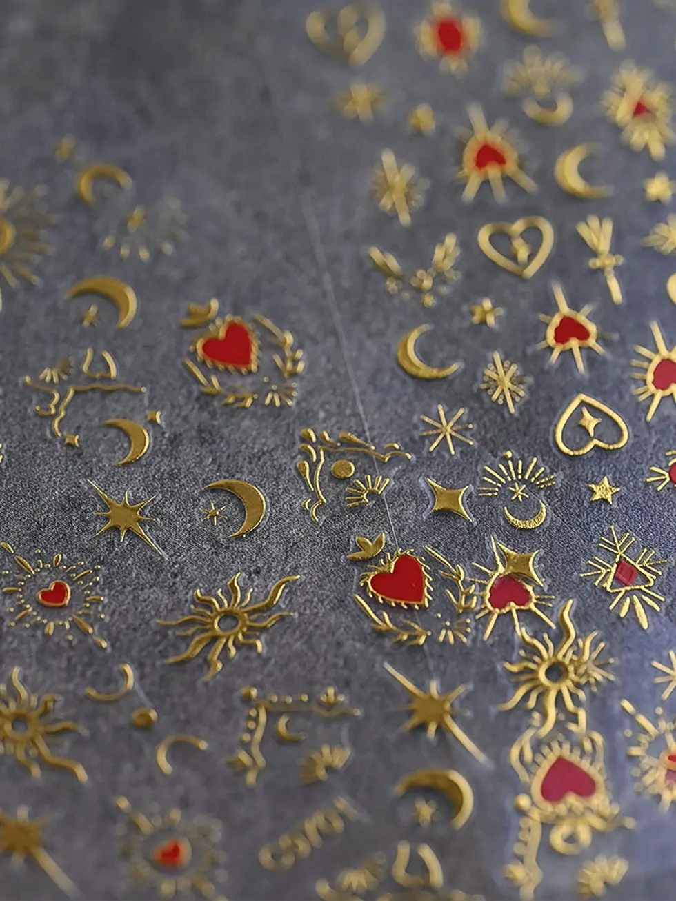 1 Peça Adesivos de Arte para Unhas 3D com Coração Bronzeado Dourado, Estrelas H
