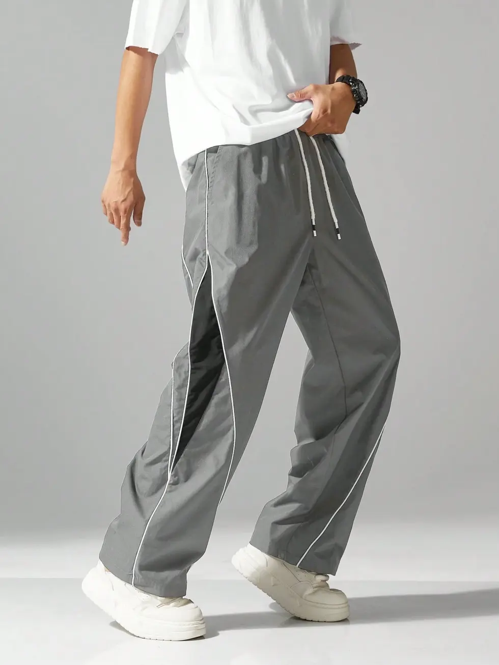 1 Peça Calça Cargo Casual Reta de Perna Larga com Cordão Elástico na Cintura, C