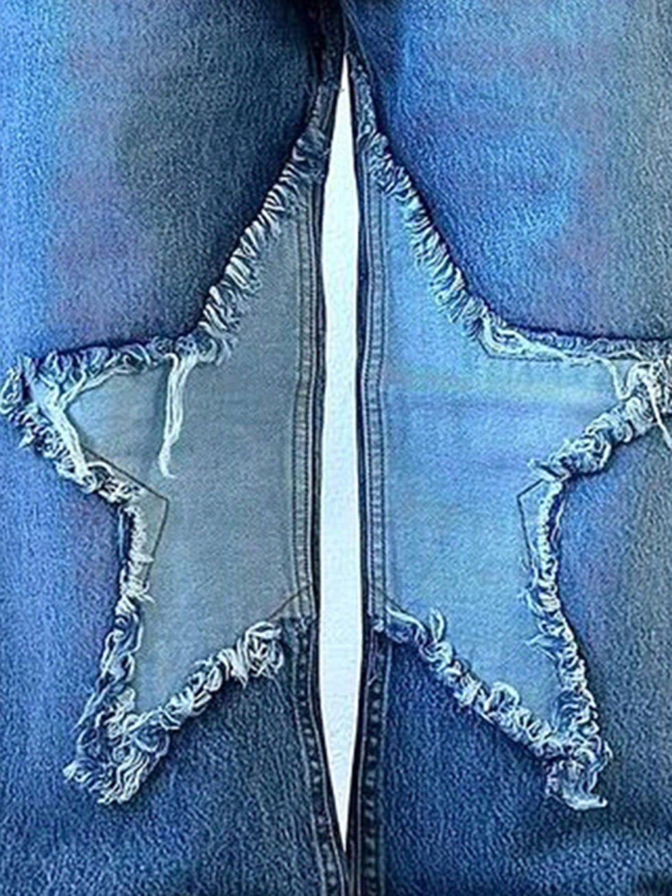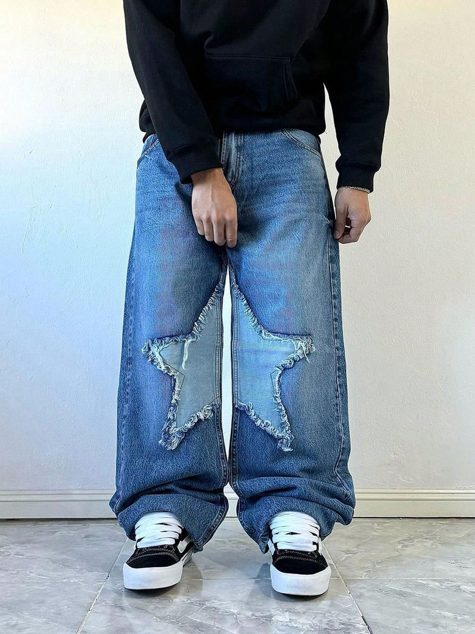 1 peça Calça de Perna Larga Não Elástica Azul com Decoração de Estrela para Hom