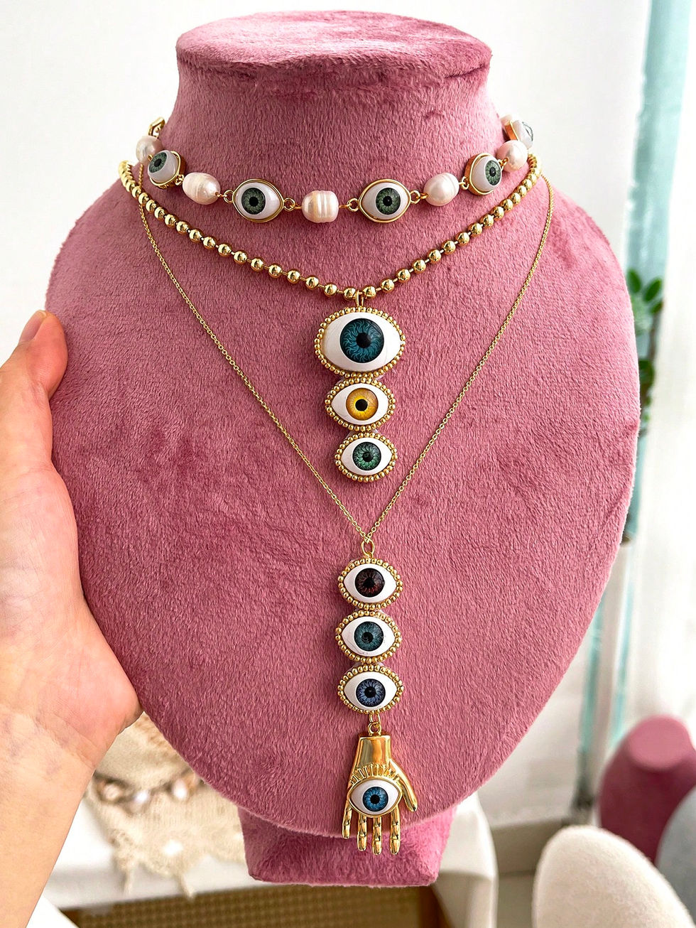 1 Peça Colar de Pérola de Água Doce em Forma de Palma com Olho Criativo, Elegan