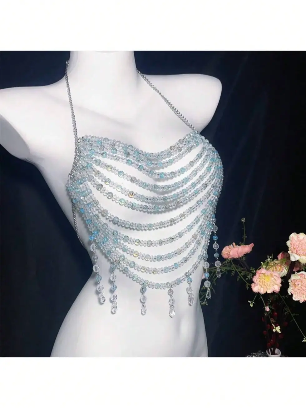 1 Peça Elegante e Requintada Corrente Corporal Tecida à Mão com Pérolas Falsas