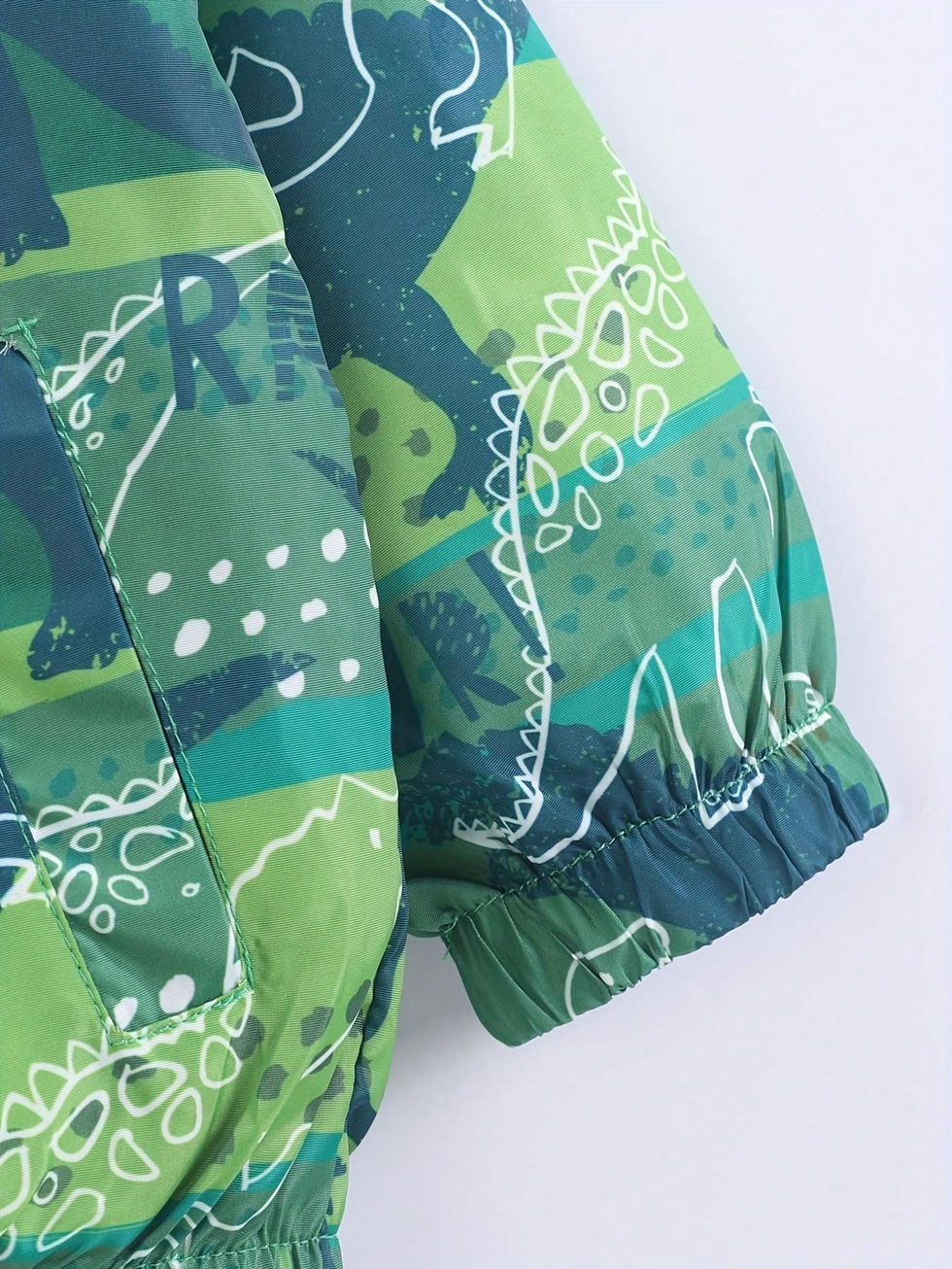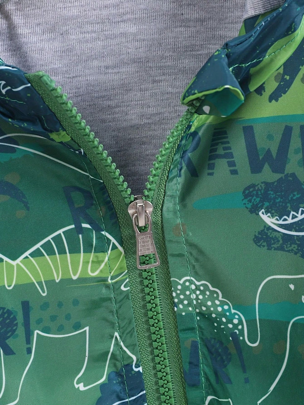 1 Peça Jaqueta com Capuz com Bolso de Zíper e Estampa de Letra de Dinossauro pa