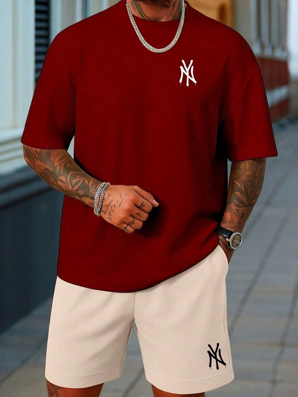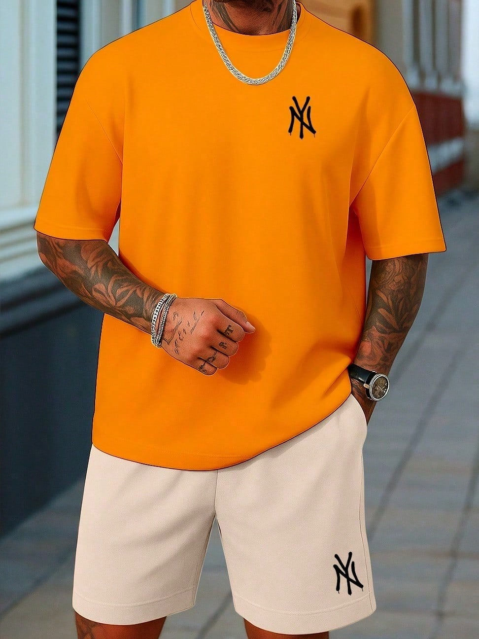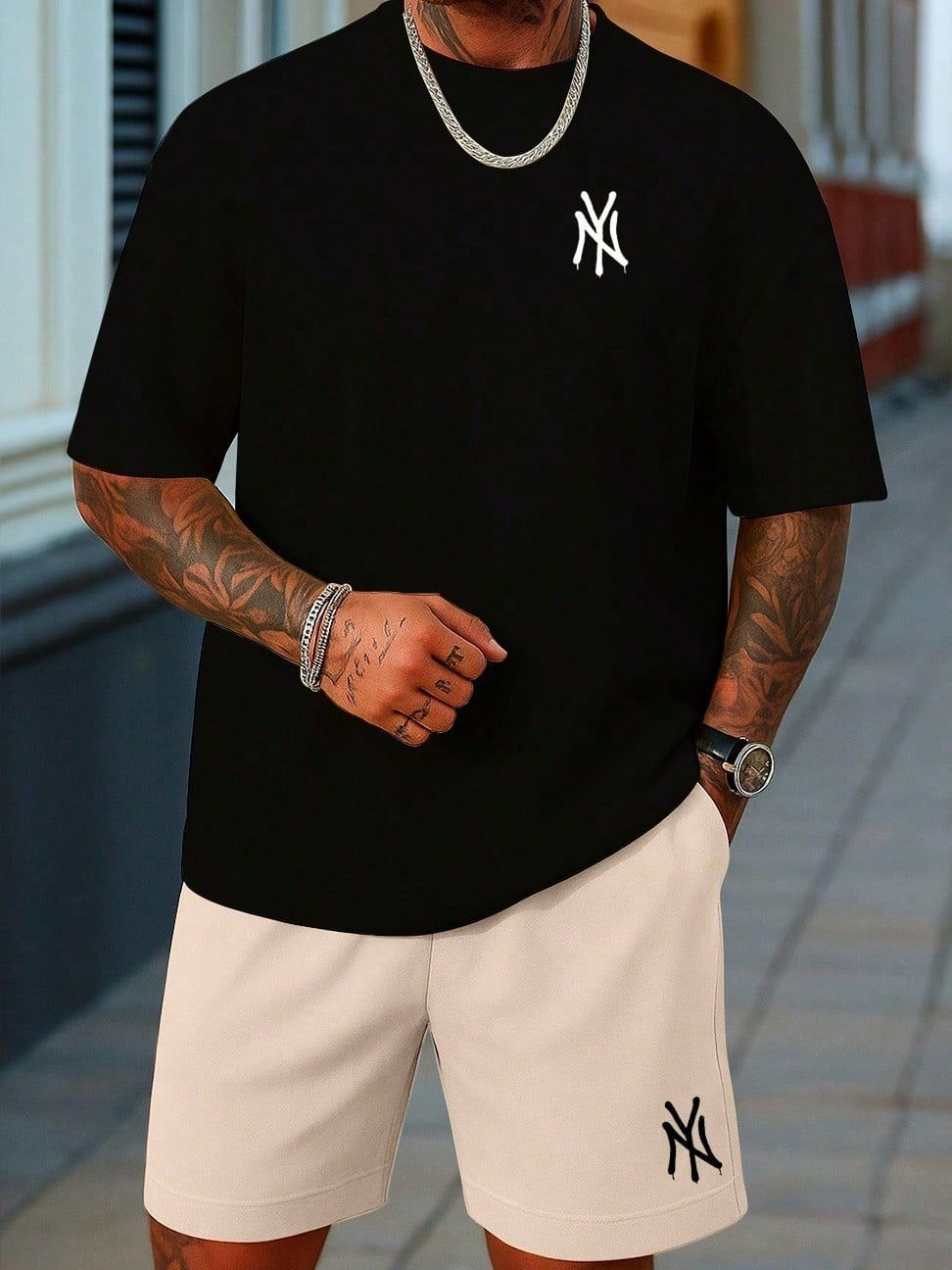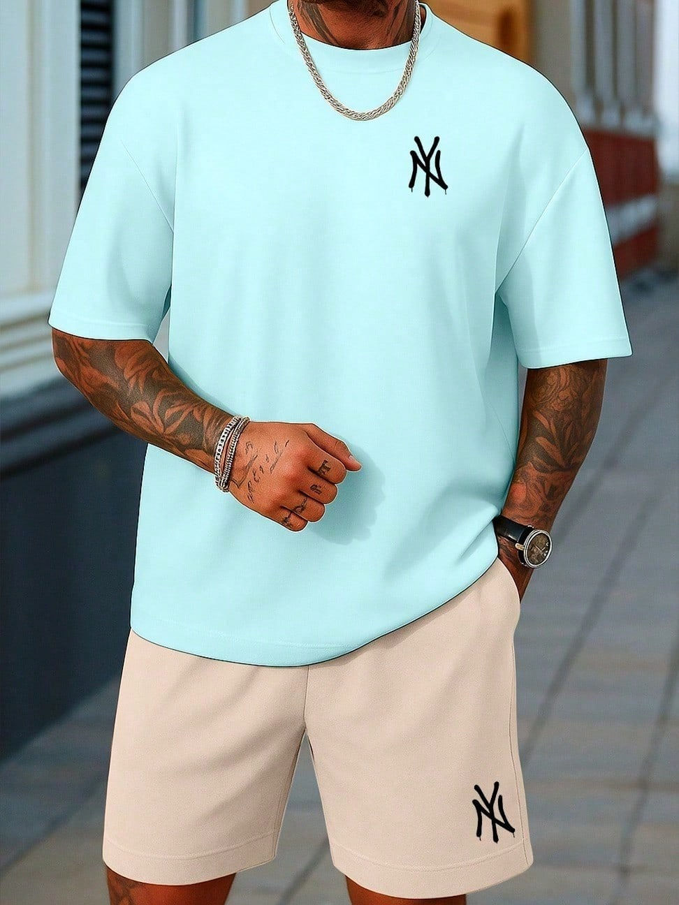 2 Peças/Conjunto Masculino Camiseta e Bermuda NY 100% Algodão Estiloso New York