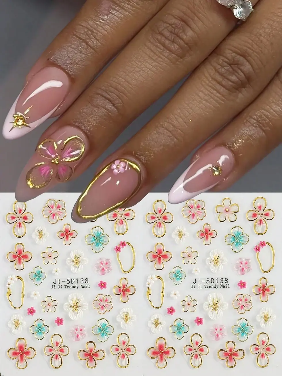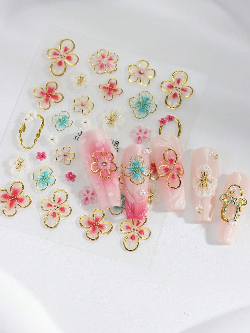 2 Peças de Primavera e Verão Adesivos de Unha com Relevo de Pétalas de Flores B