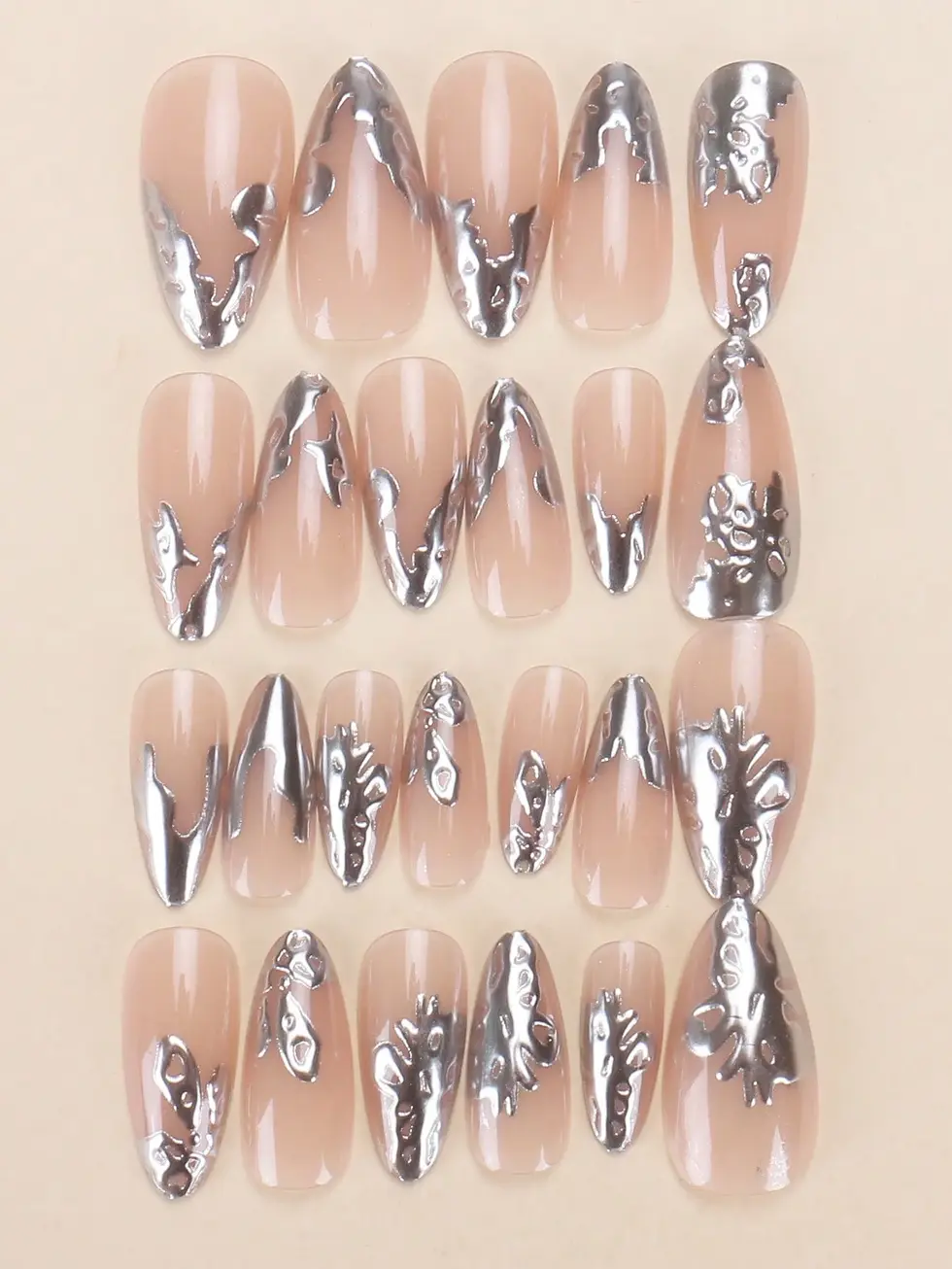 24 Peças de Adesivos de Unhas Falsas com Formato de Amêndoa, Estilo Francês Doc