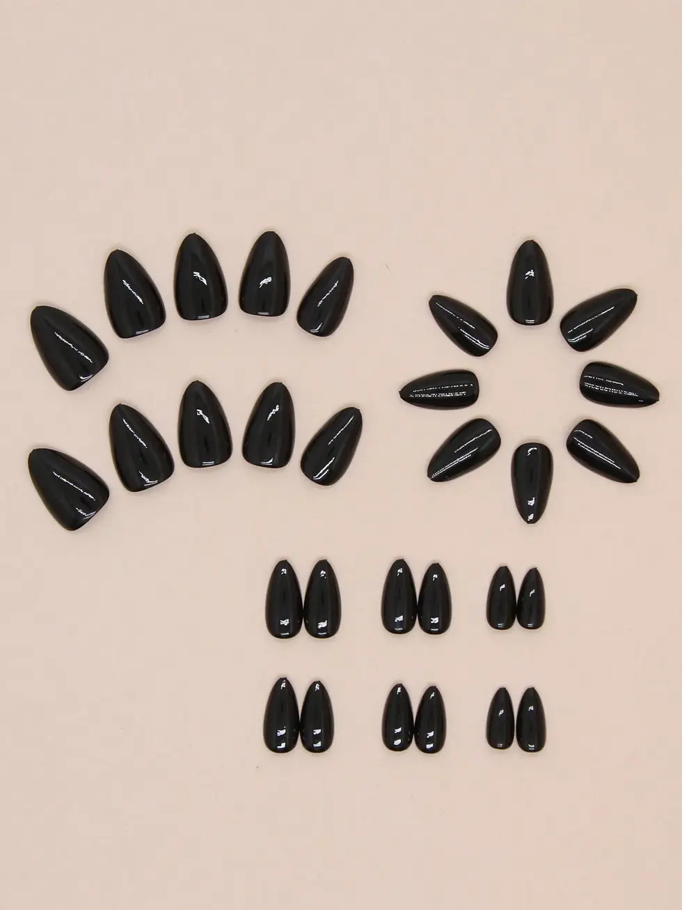30 Peças Conjunto de Unhas Postiças Pretas Sólidas Simples e Vintage no Formato