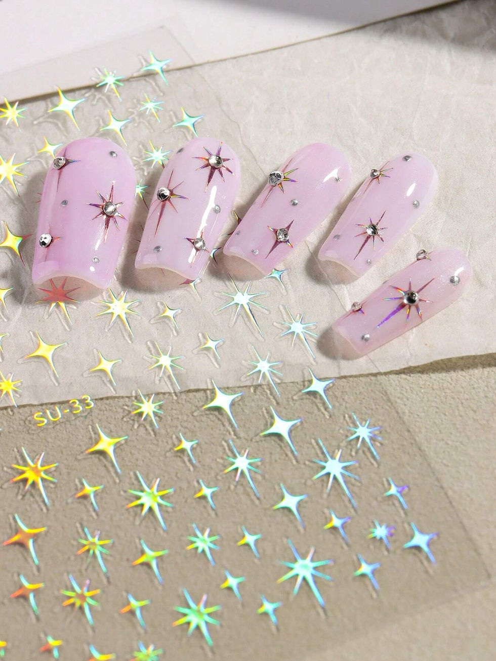 4 peças Adesivos de unhas em metal dourado a laser em 3D, Decalques de Decoraçã