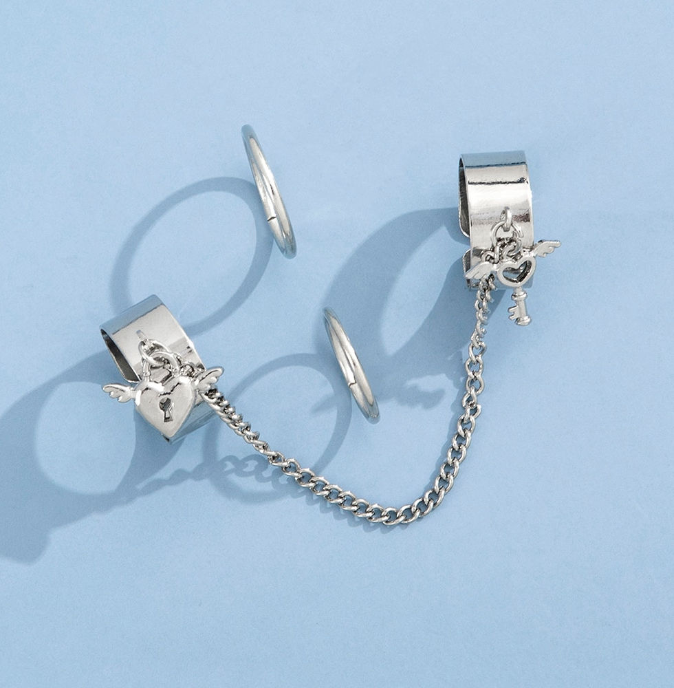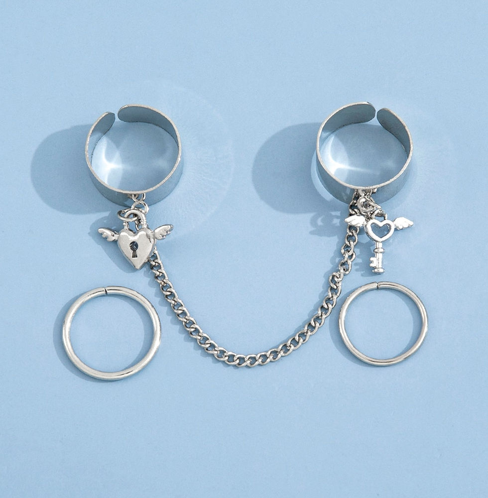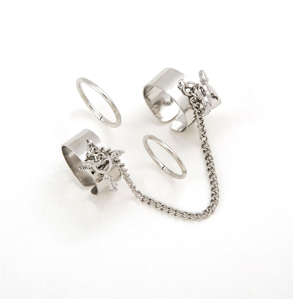 4 peças anéis de corrente para mulheres conjunto geométrico casal