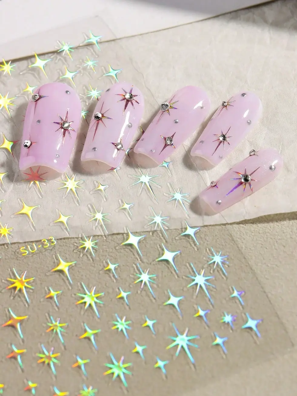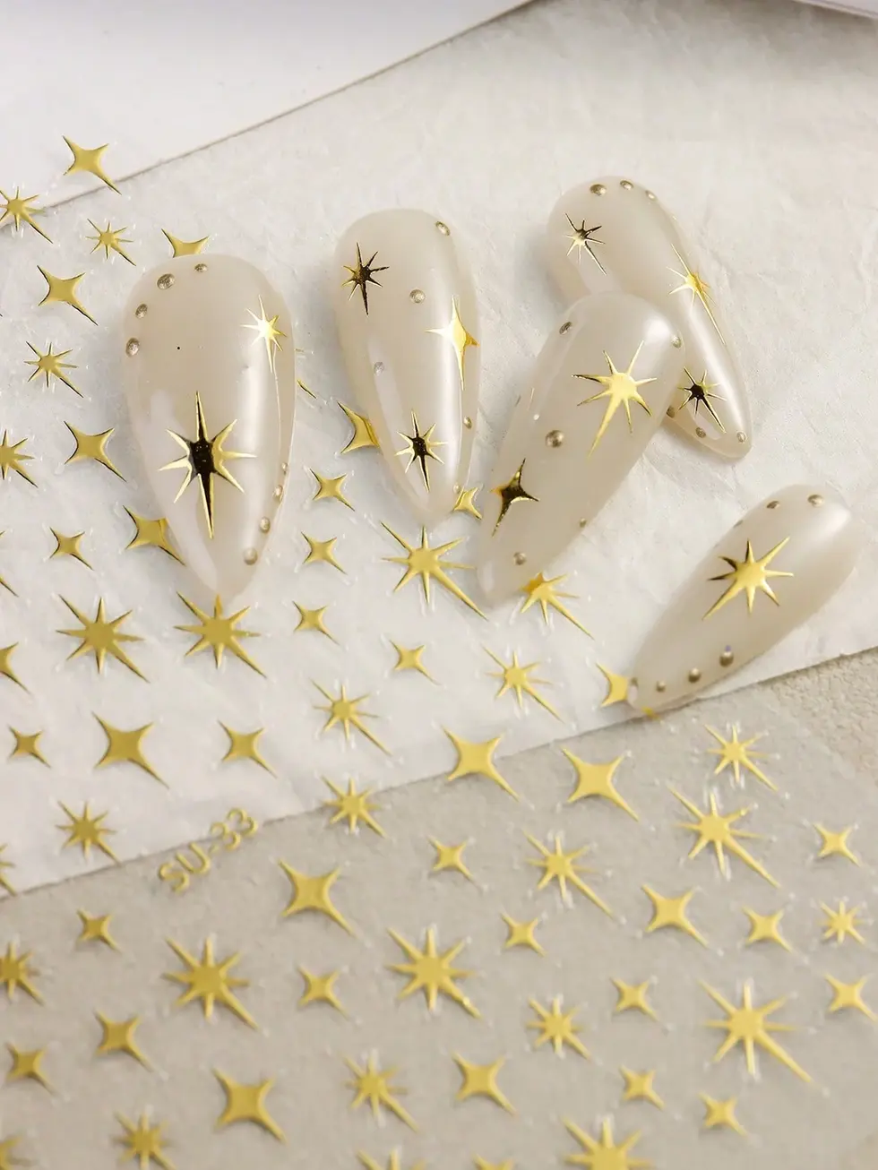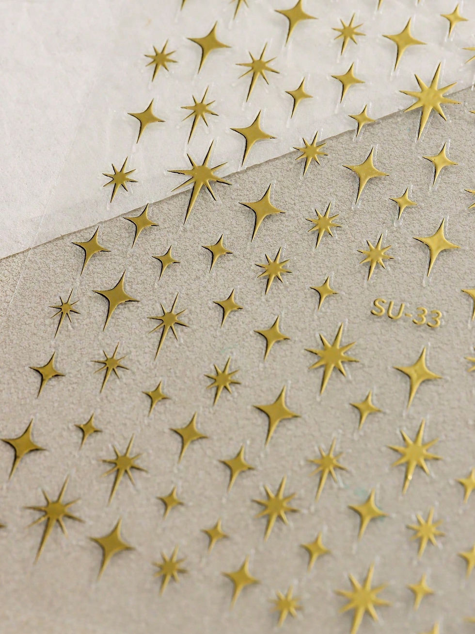 4 Peças de Adesivos de Arte de Unhas Estreladas a Laser de Metal - Dourado, Pra