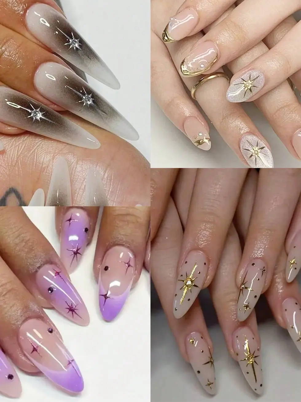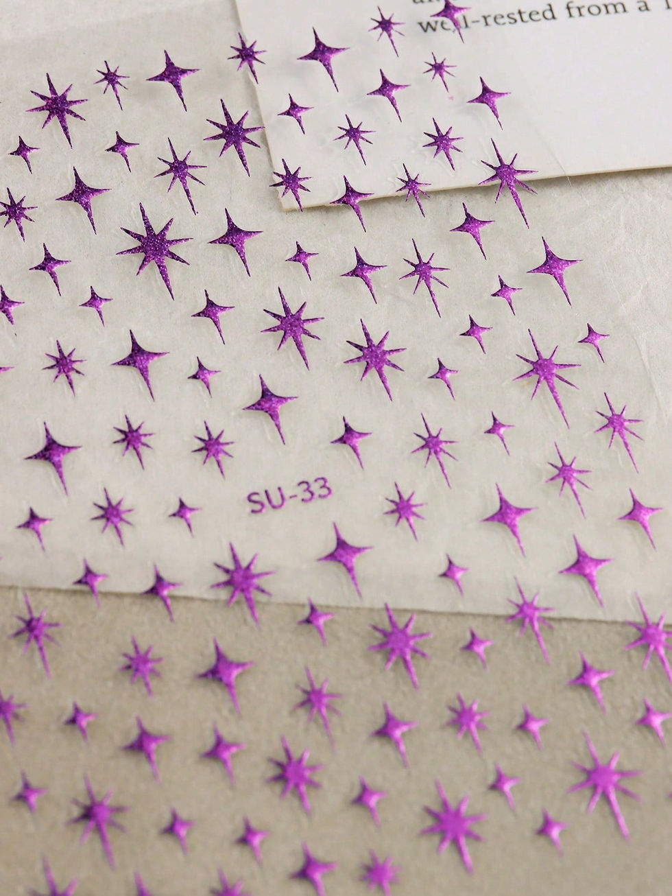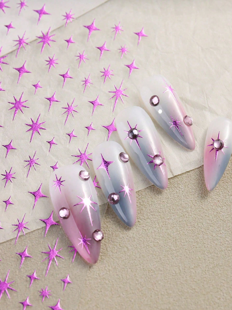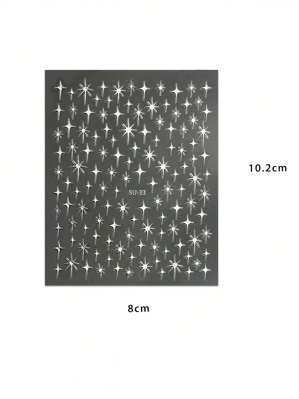 4 Peças de Adesivos de Arte de Unhas Estreladas a Laser de Metal - Dourado, Pra