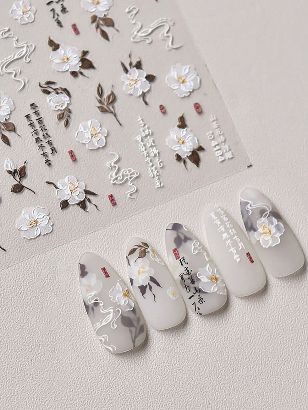 5D Adesivo de Arte de Unhas de Flor de Camélia Branca, Decalque Decorativo de U