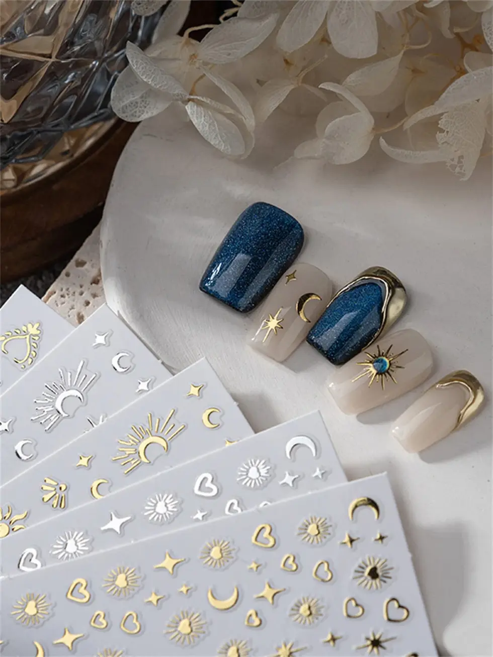 6 folhas de adesivos de arte de unhas com tema boêmio com estrela, lua, padrão