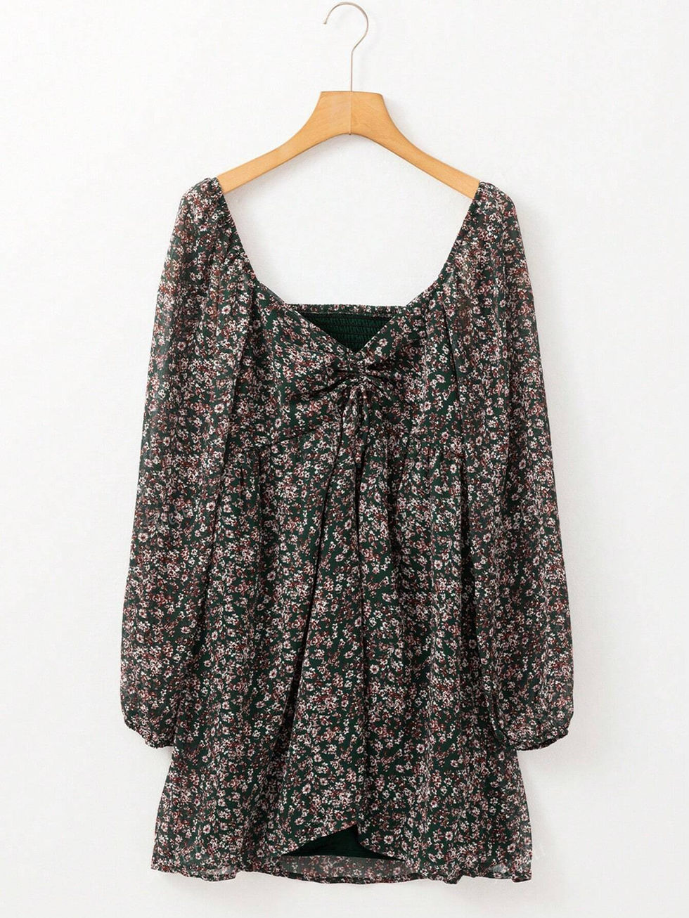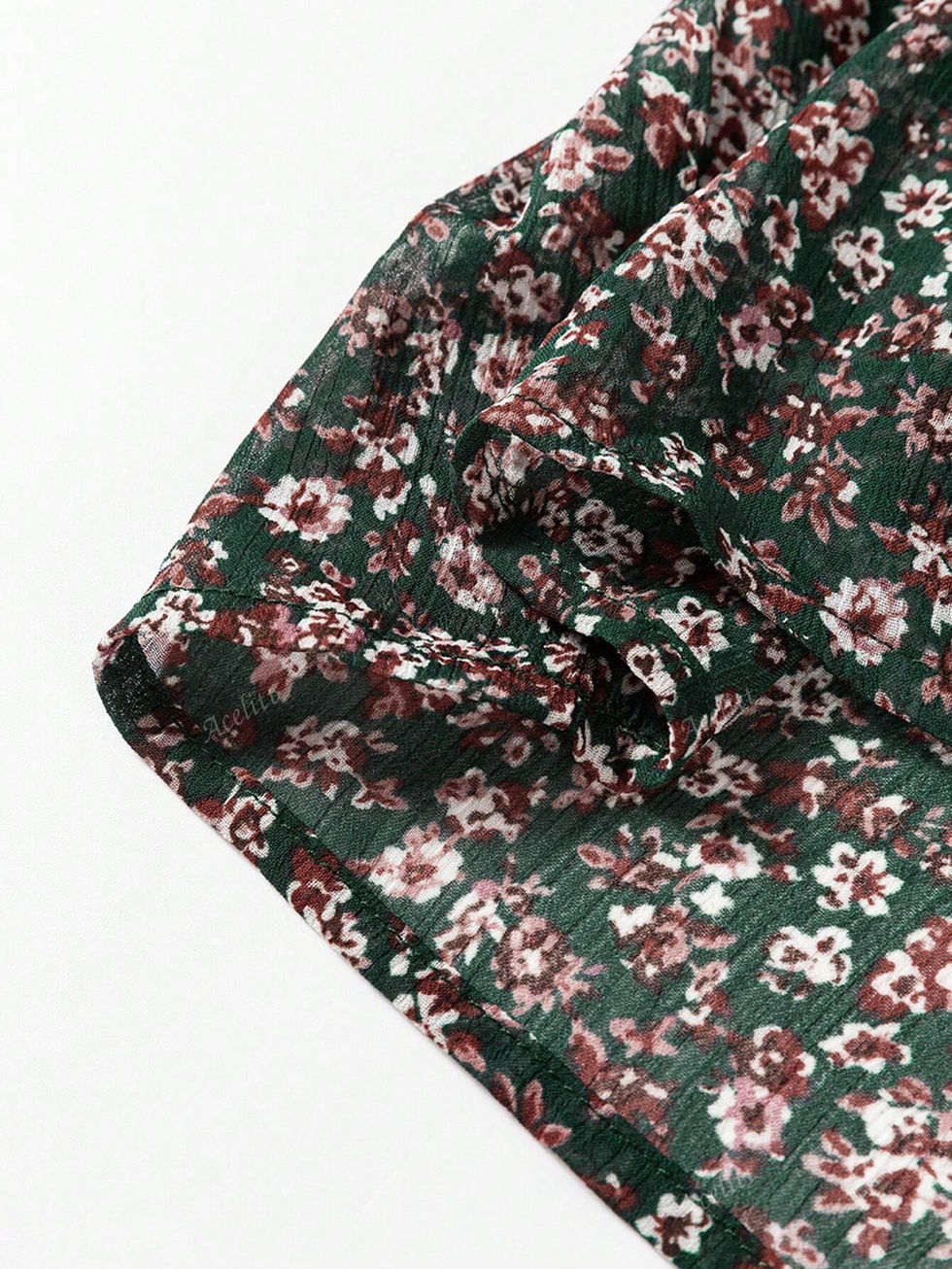Acelitt Vestido com Mangas de Lanterna, Franzido na Frente, Retalhos e Estampa