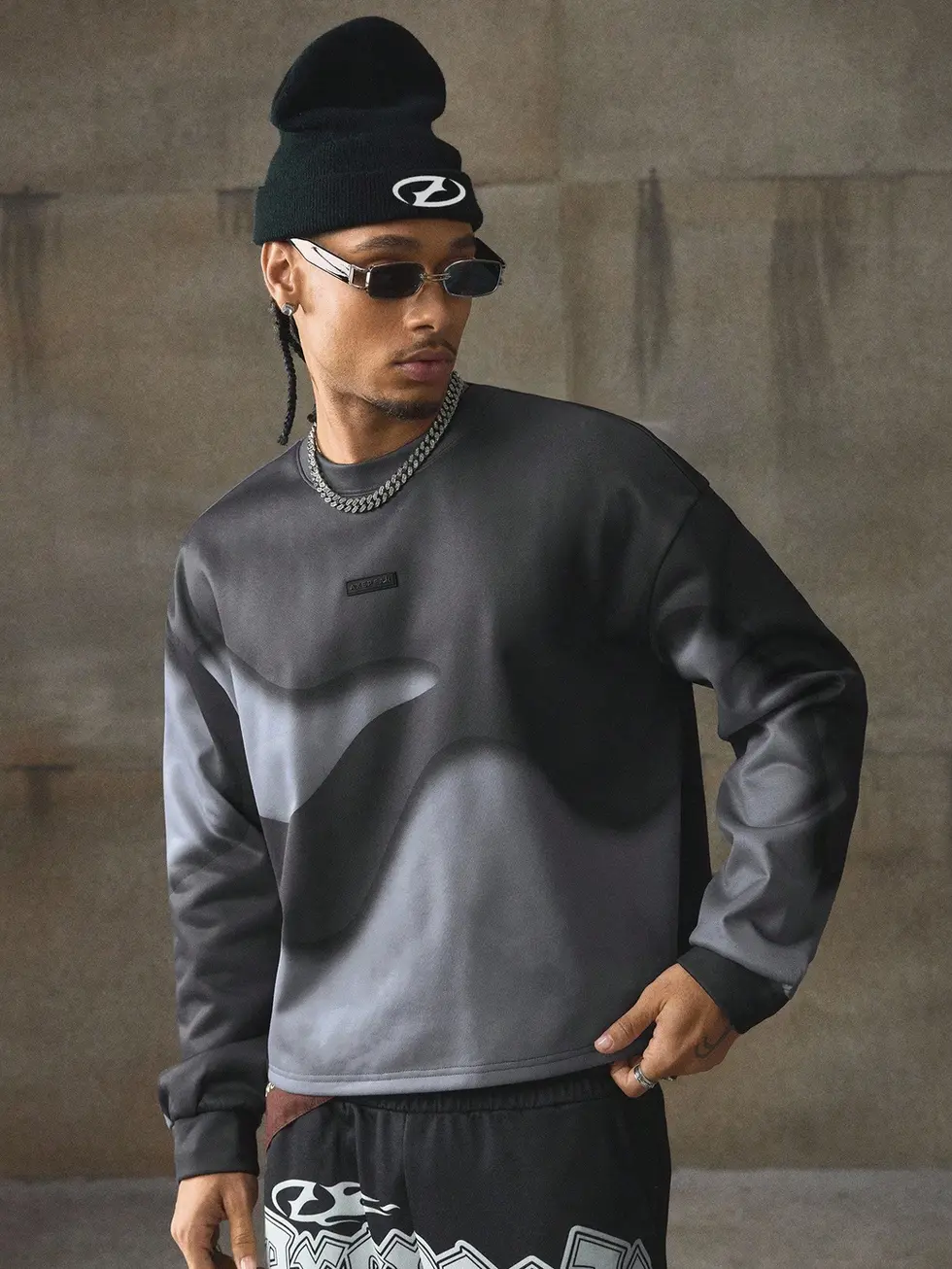 AXEPEAK AXEPEAK Moletom Casual Colorblock, Moletom Solto de Gola Redonda de Man