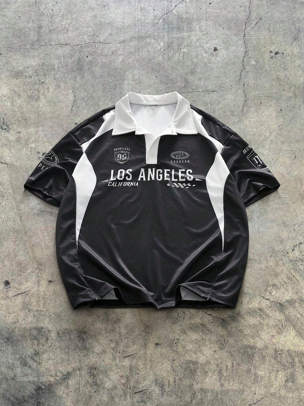 AXEPEAK Camisa Polo de Malha Solta com Botão Meio, de Manga Curta e Estampada,