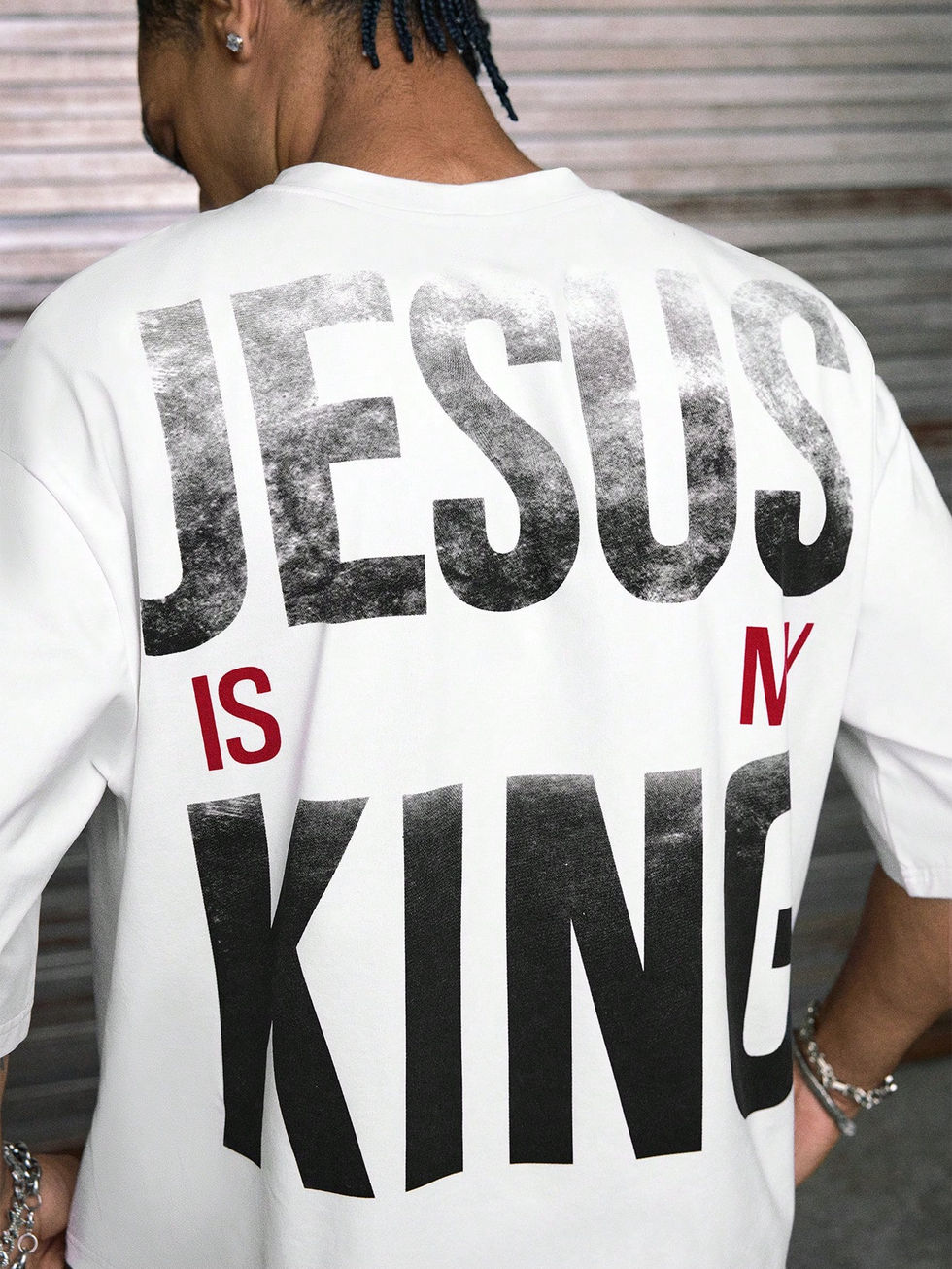 AXEPEAK Camiseta de Manga Curta com Decote em V Oversized Estampada em Patchwor