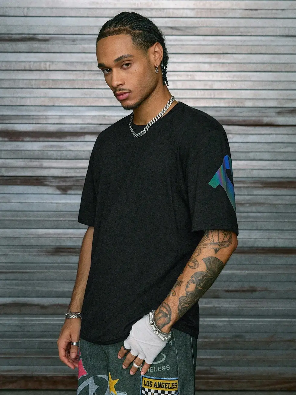 AXEPEAK Camiseta masculina de algodão de ajuste folgado com Estampa Gráfica Ref