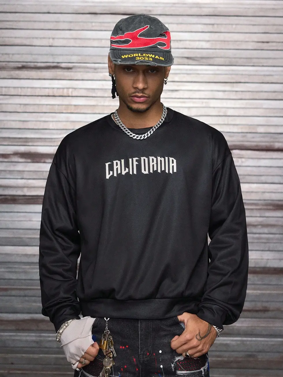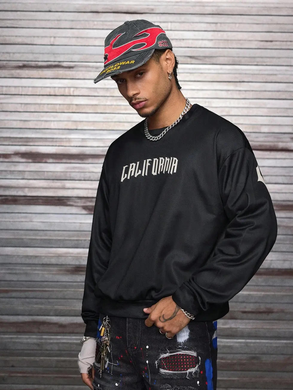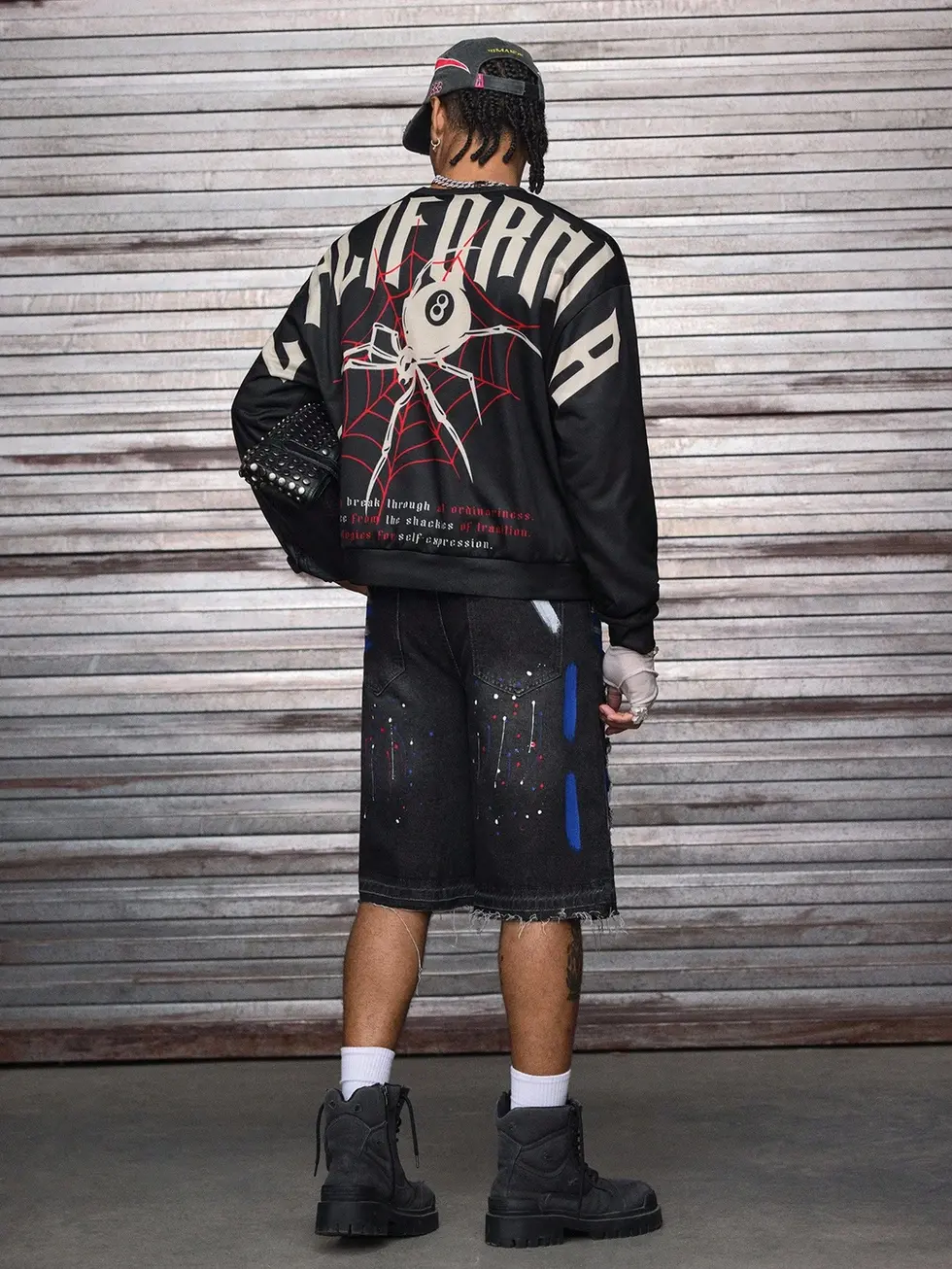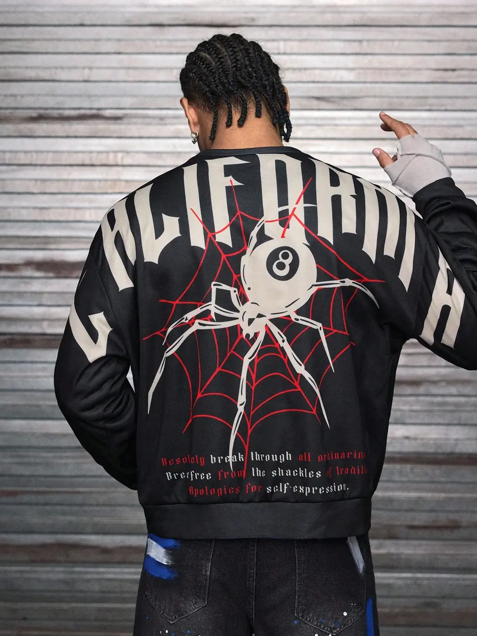 AXEPEAK Camisola de Gola Redonda Estampada com Estampa de Aranha, Estilo Solto,