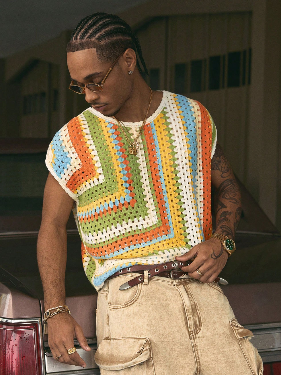 AXEPEAK Colete de Suéter Bordado Colorido para Outono Masculino, Pronto para o