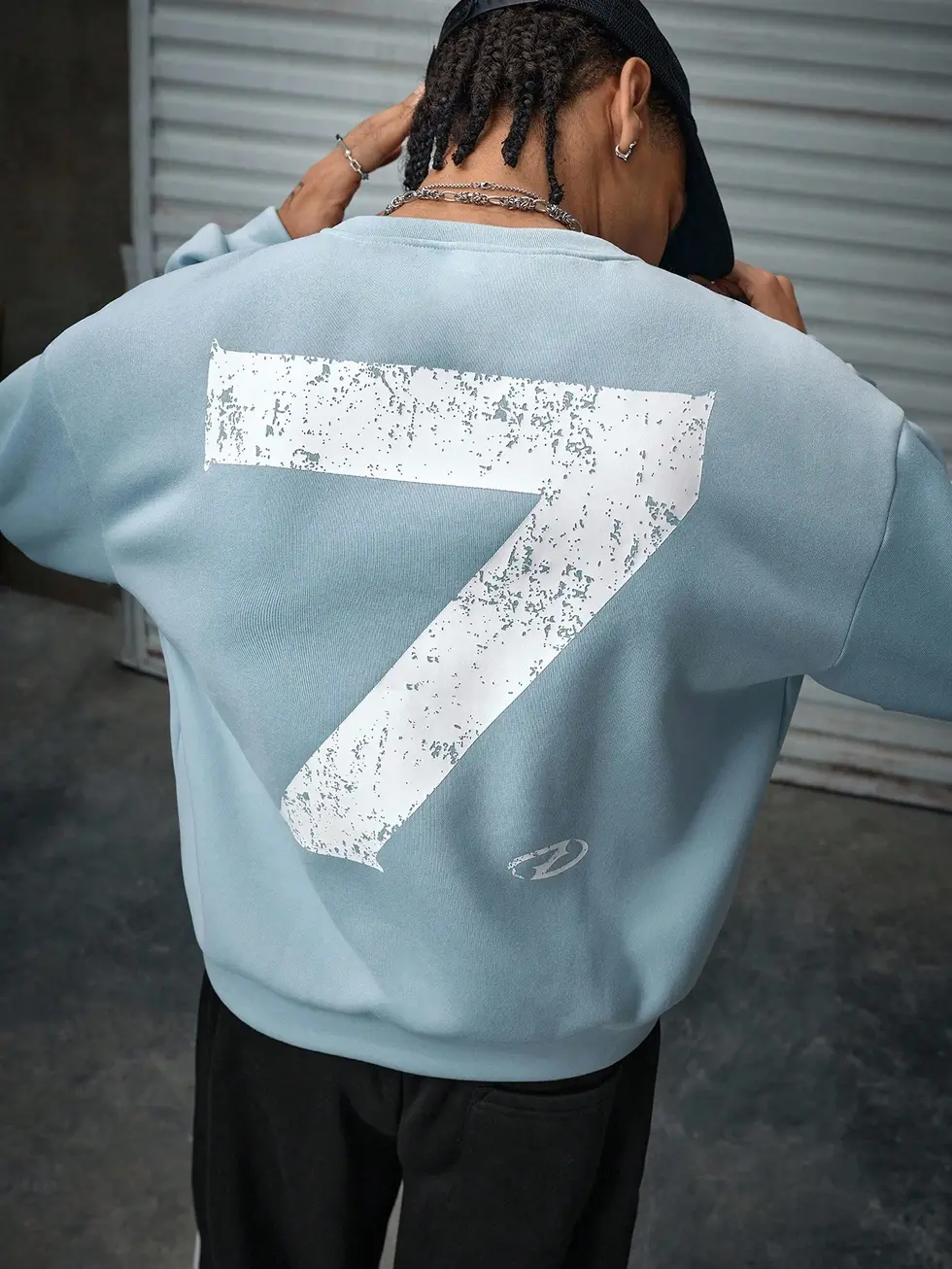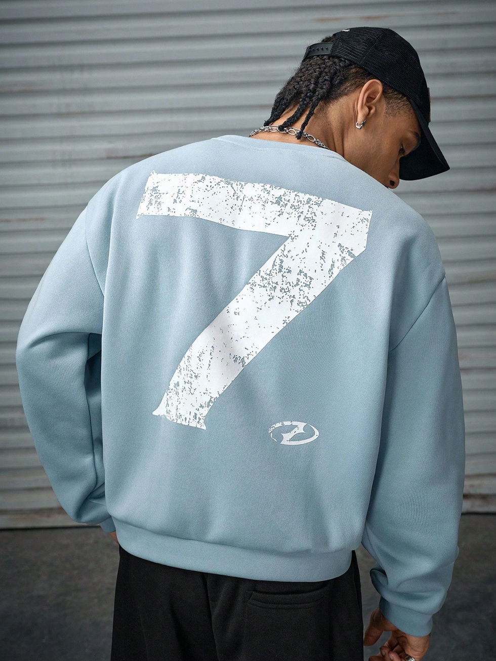 AXEPEAK Moletom Casual Masculino de Corte Folgado com Estampa Numérica, Estilo
