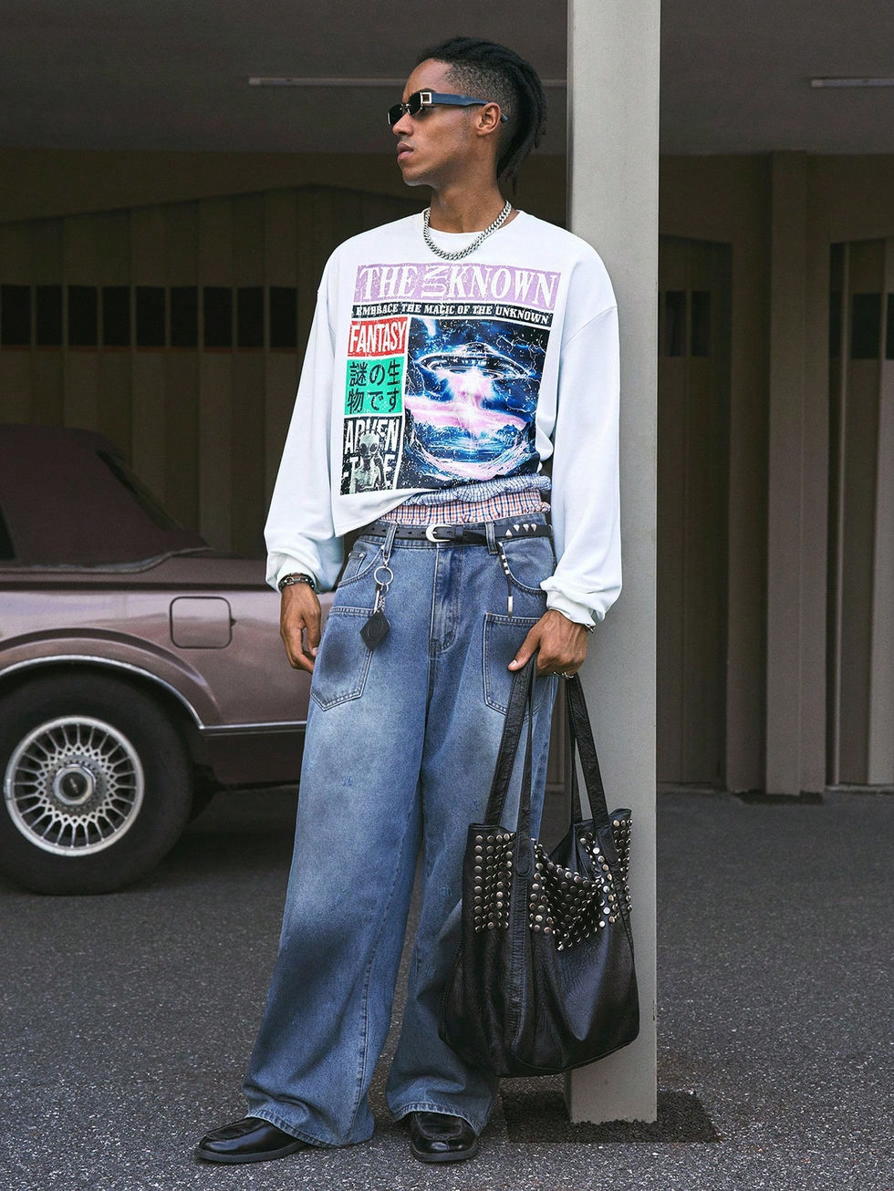 AXEPEAK Moletom de Gola Redonda com Caimento Folgado e Manga Comprida para Home