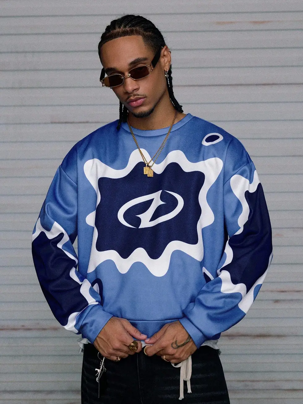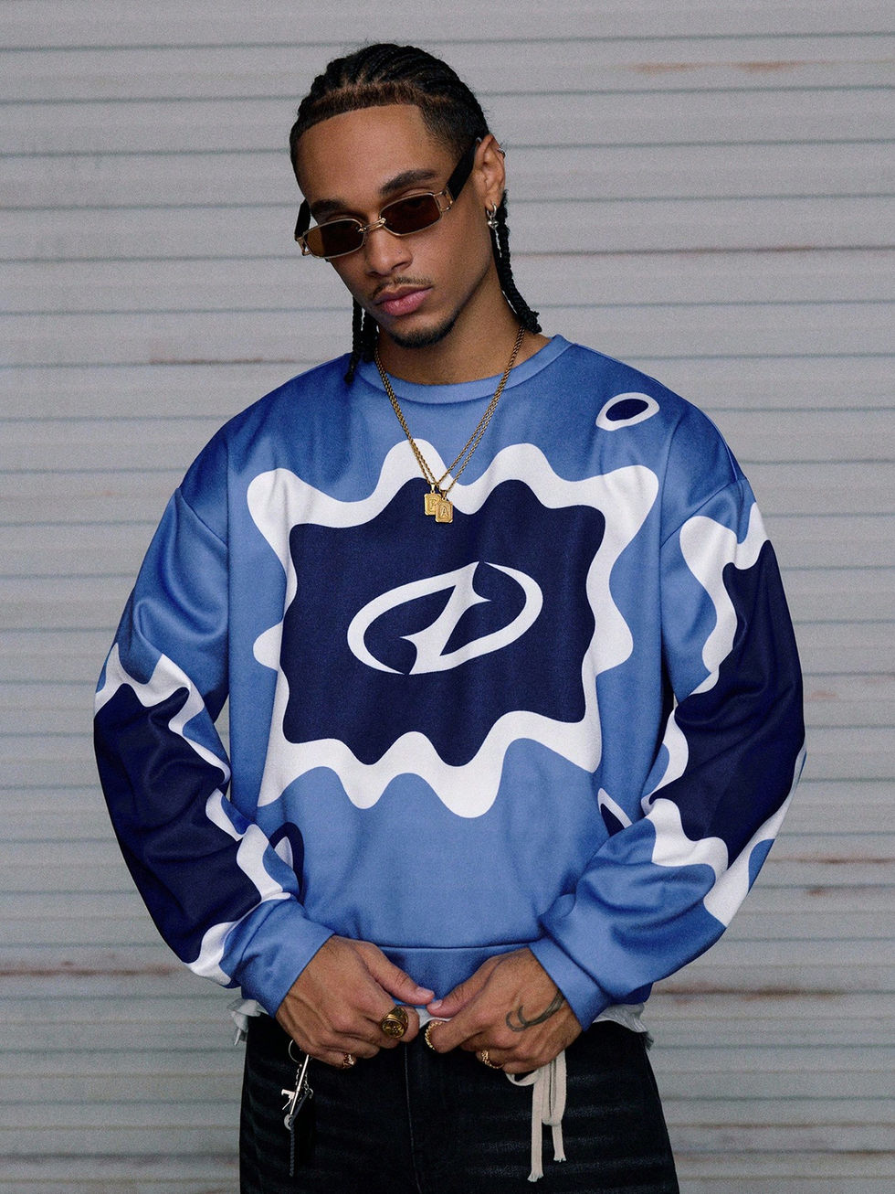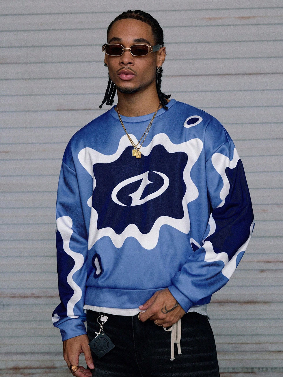 AXEPEAK Suéter Casual de Gola Careca de Manga Longa com Estampa Geométrica Masc