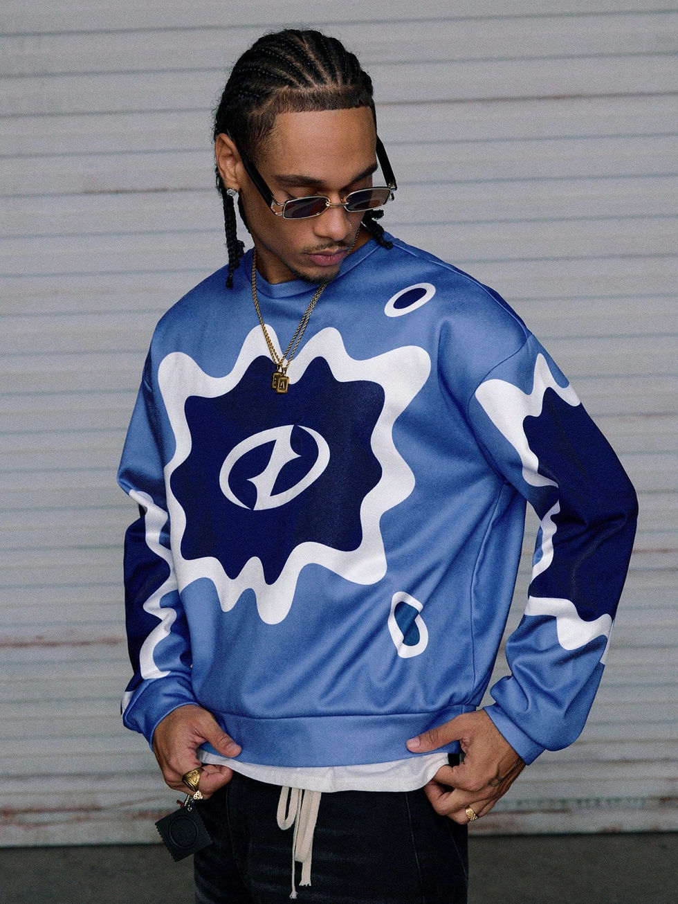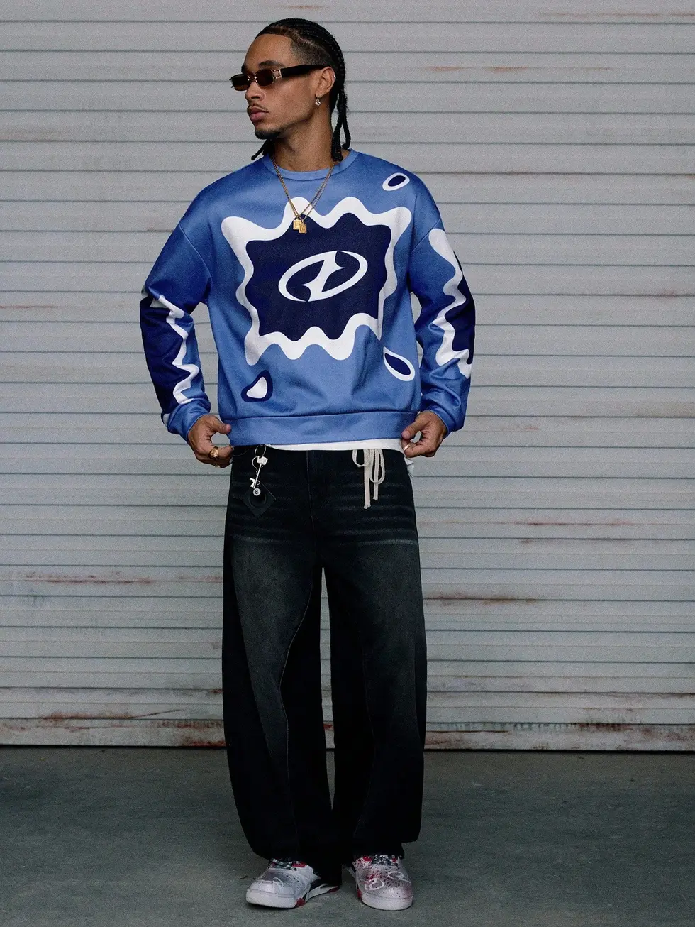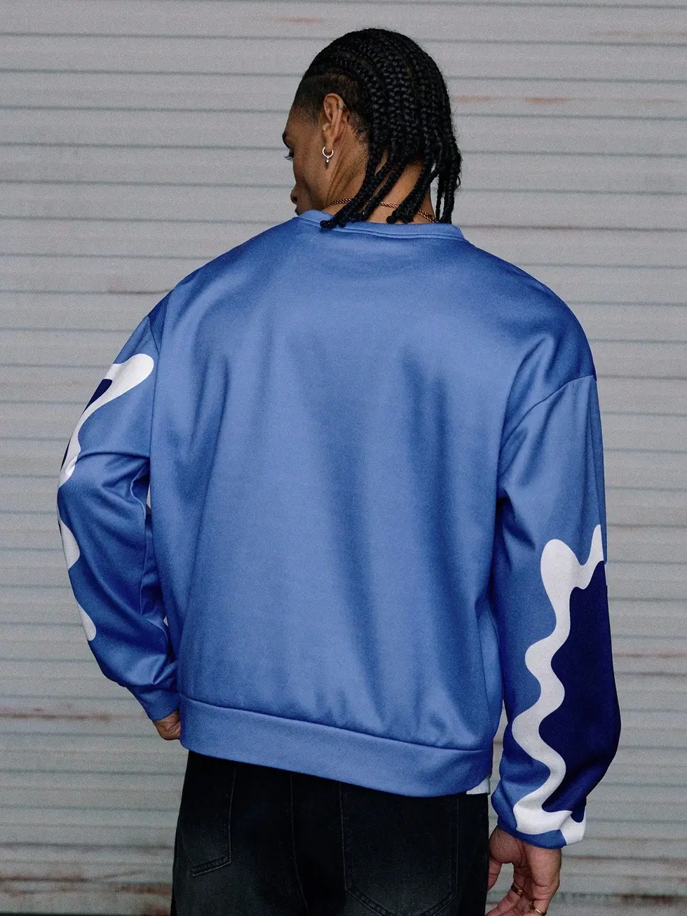 AXEPEAK Suéter Casual de Gola Careca de Manga Longa com Estampa Geométrica Masc