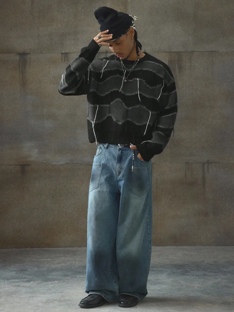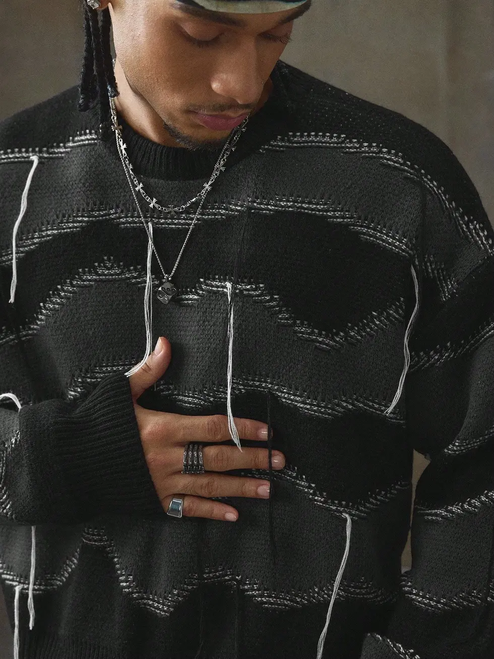 AXEPEAK Suéter Casual Masculino de Ajuste Folgado com Listras, Gola Redonda e M