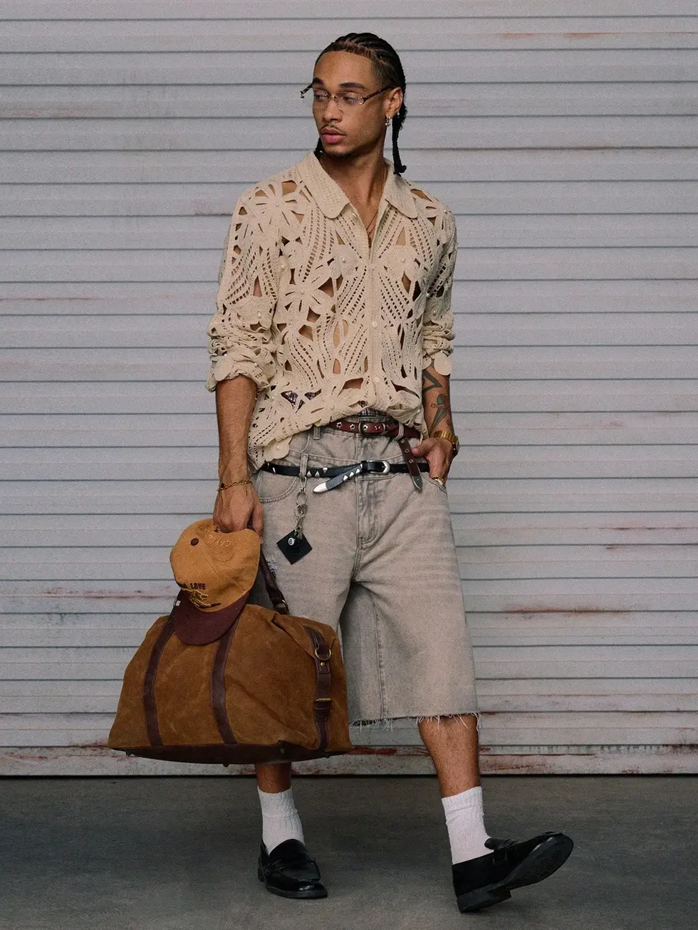 AXEPEAK Suéter de Tricô Sexy e Vazado com Tachas para Homens
