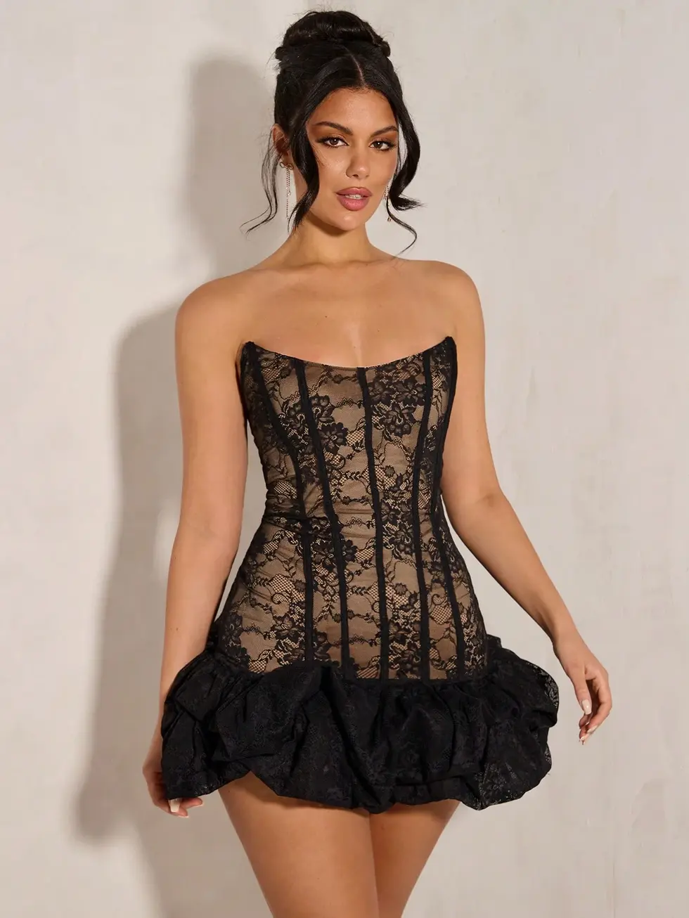 BAE Vestido Corpete Boddy de Renda Preta, Vestido Bolha, Vestido Corpete para M