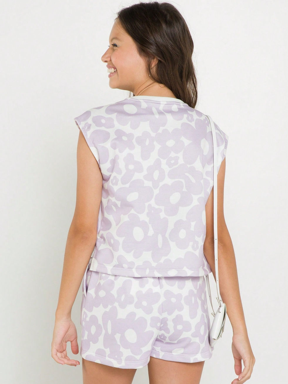 Blusa Cropped Estampada Floral Psicodélico de Manga Curta