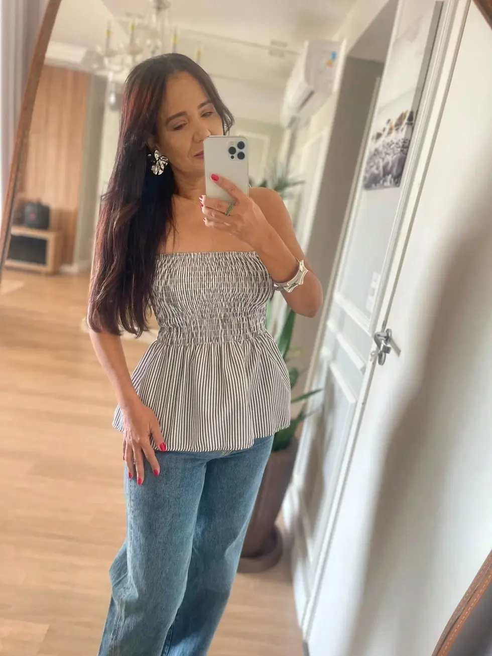 BLUSA FEMININA VERÃO LISTRADA Simples Casual elegante Sensual Tecido composto