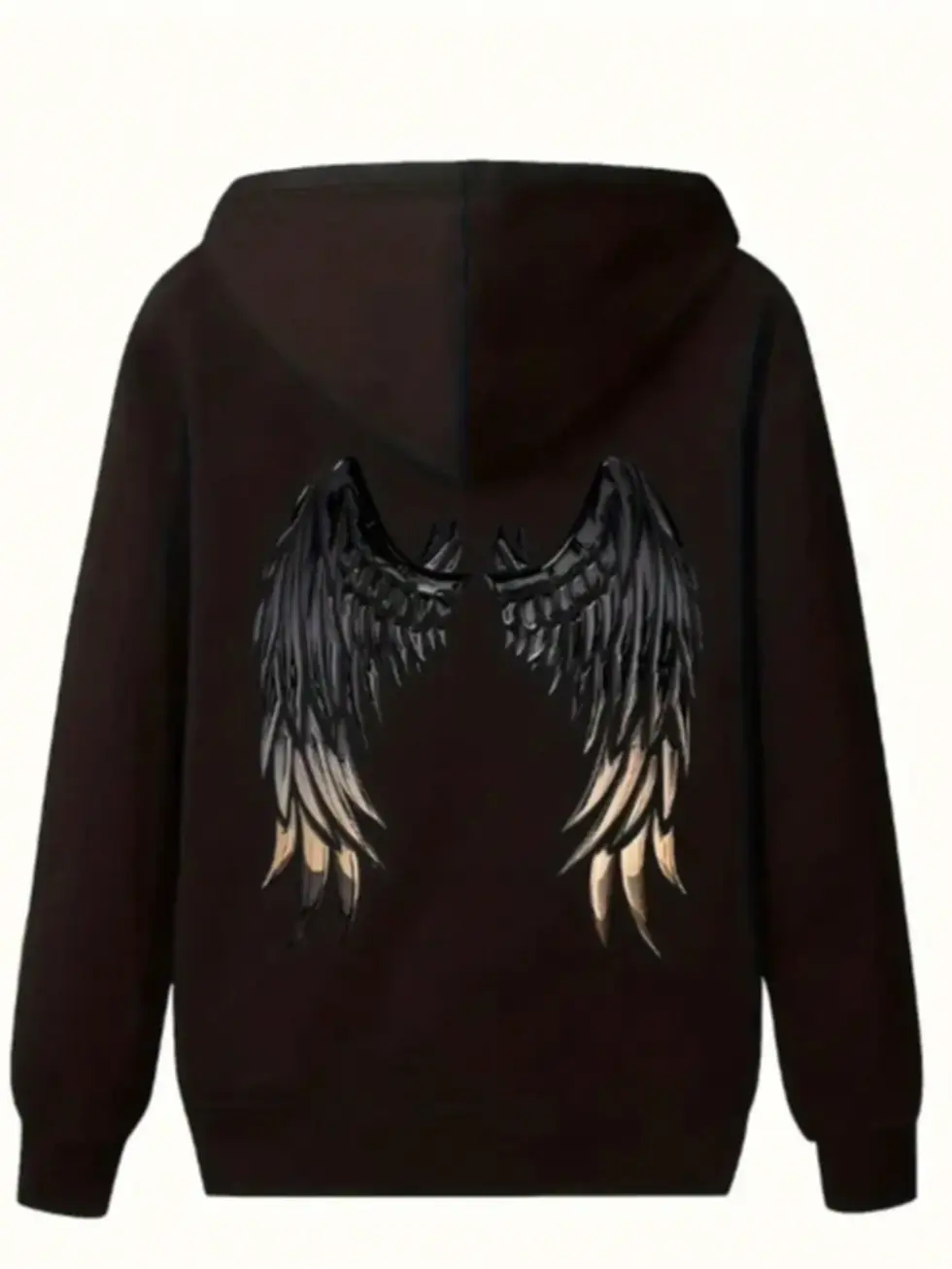 Blusa Moletom Casual com Capuz, Mangas Longas e Estampa de Asas Preta e Dourad