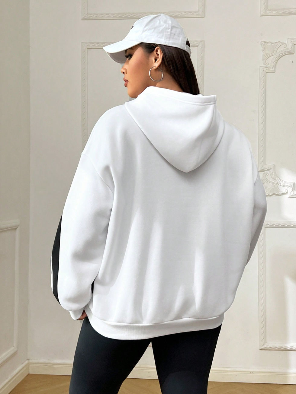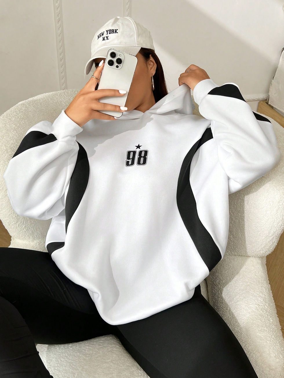 Blusão com Estampa Numérica em Bloco de Cores Preto e Branco Plus Size, Outono/