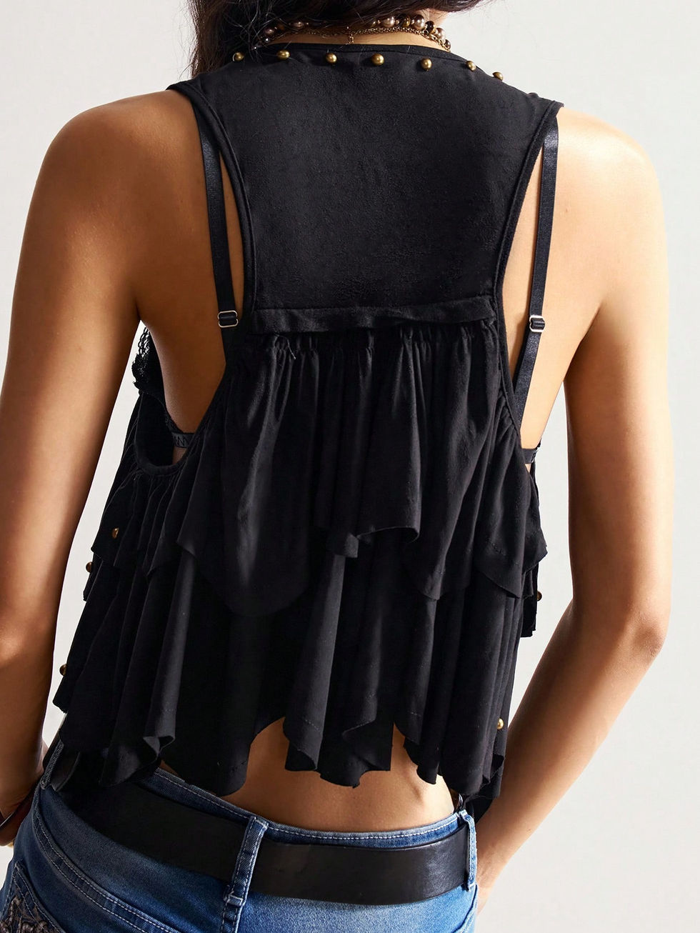 Bohemela Regata Casual Feminina de Tecido Trançado com Decoração de Miçangas e