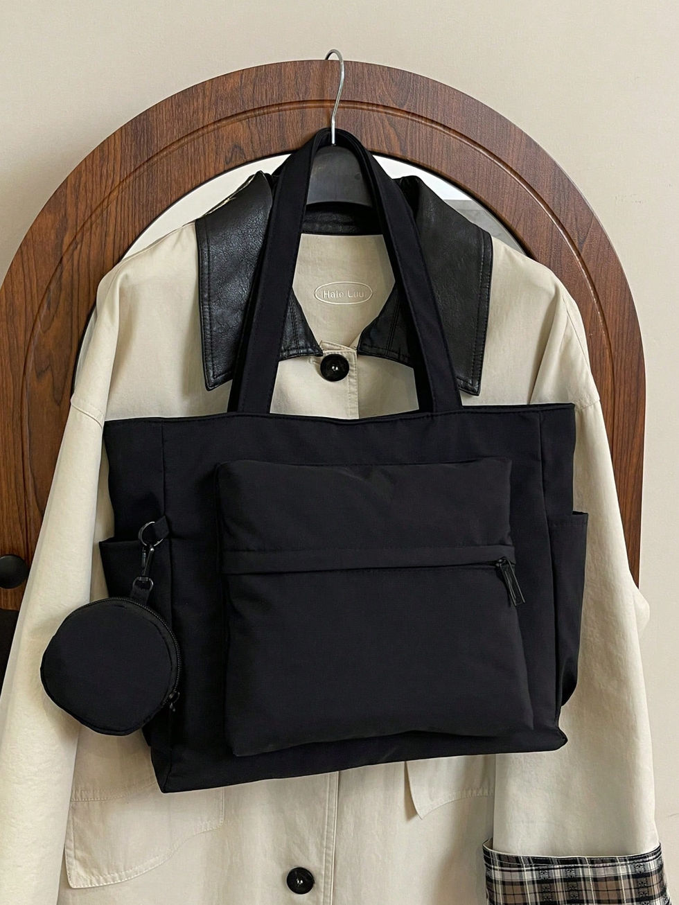 Bolsa Tote de Capacidade Grande com Bolso Transparente e Porta-Moedas, Novo Est