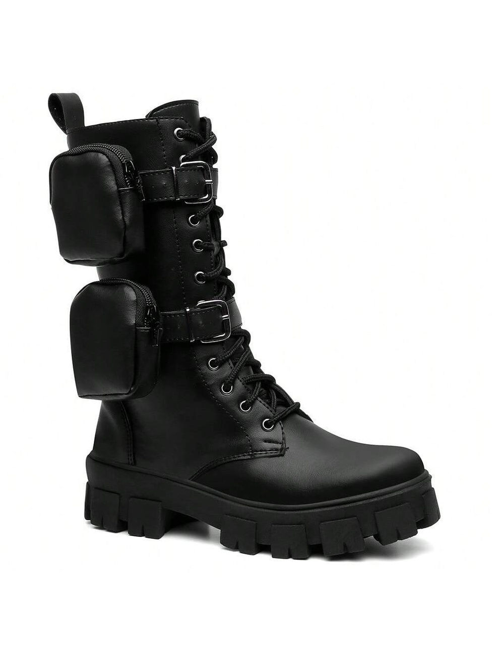 Bota Coturno Feminina Tratorada Cano Alto Com Bags Bolsinhas Removível Estilo M