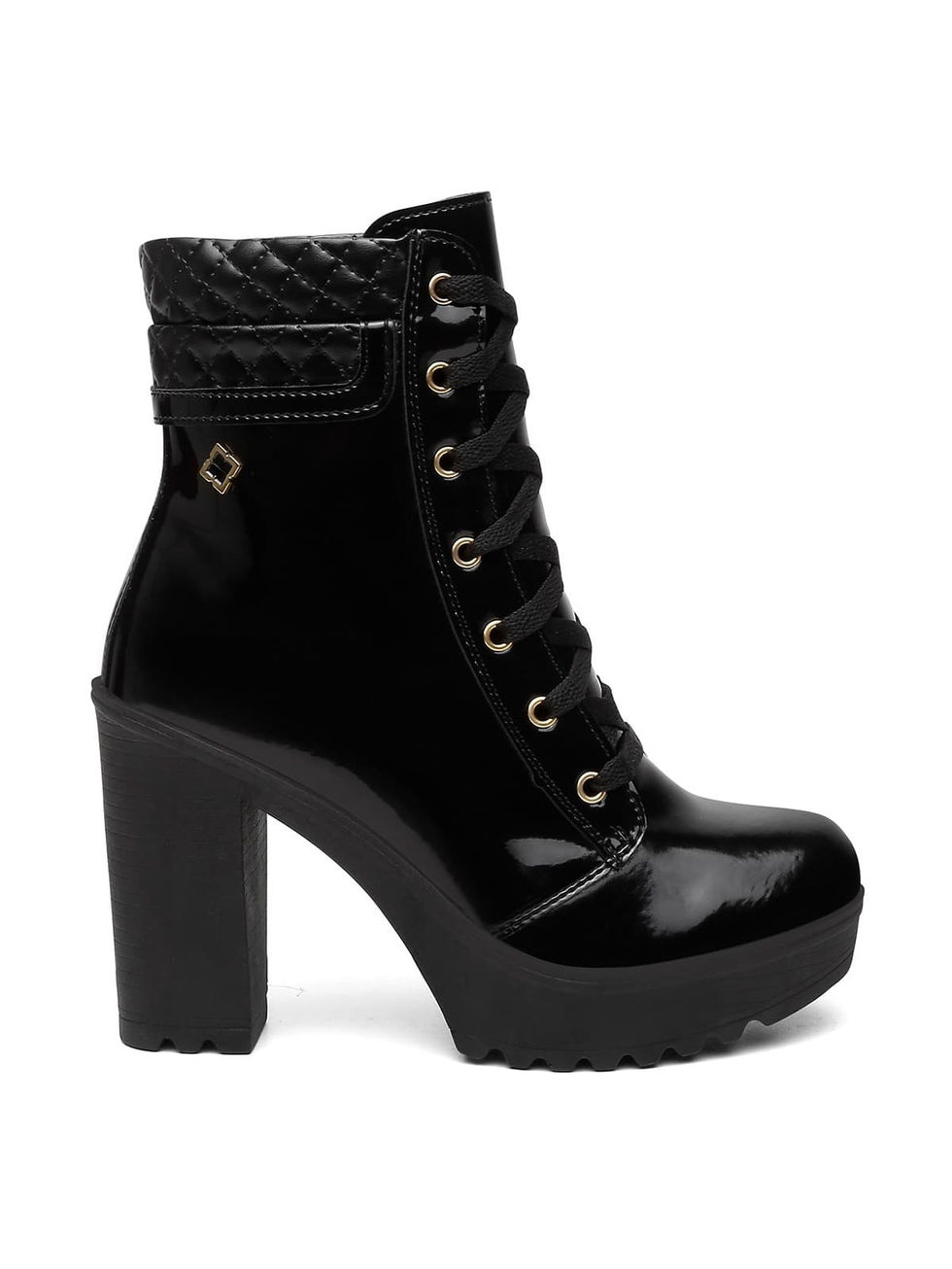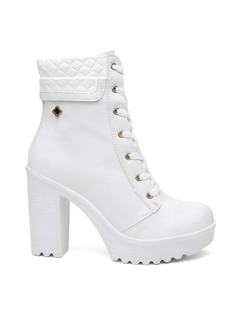 Bota Coturno Salto Grosso Moda Feminino Tratorado Blogueira Super Conforto Luxo