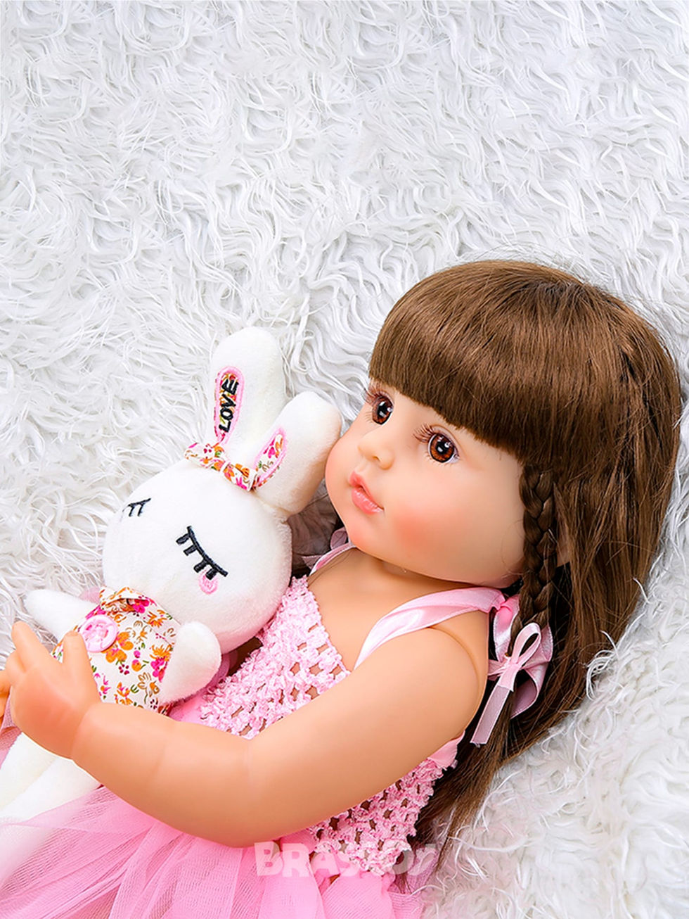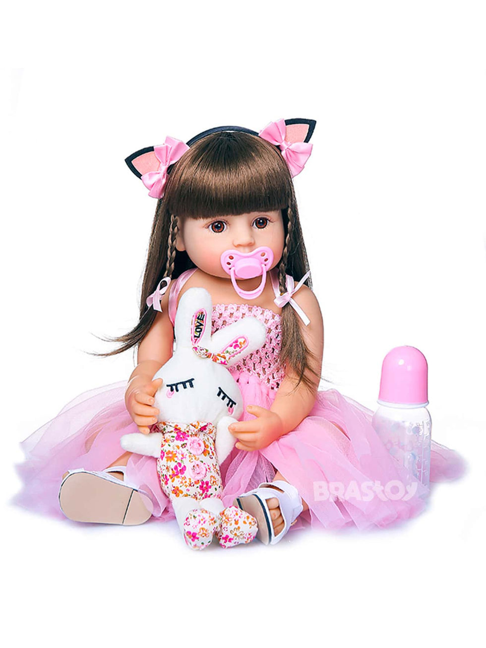 Brastoy Boneca Bebê Reborn Gatinha 48cm 100% Silicone Com Pelúcia Roupas e Aces